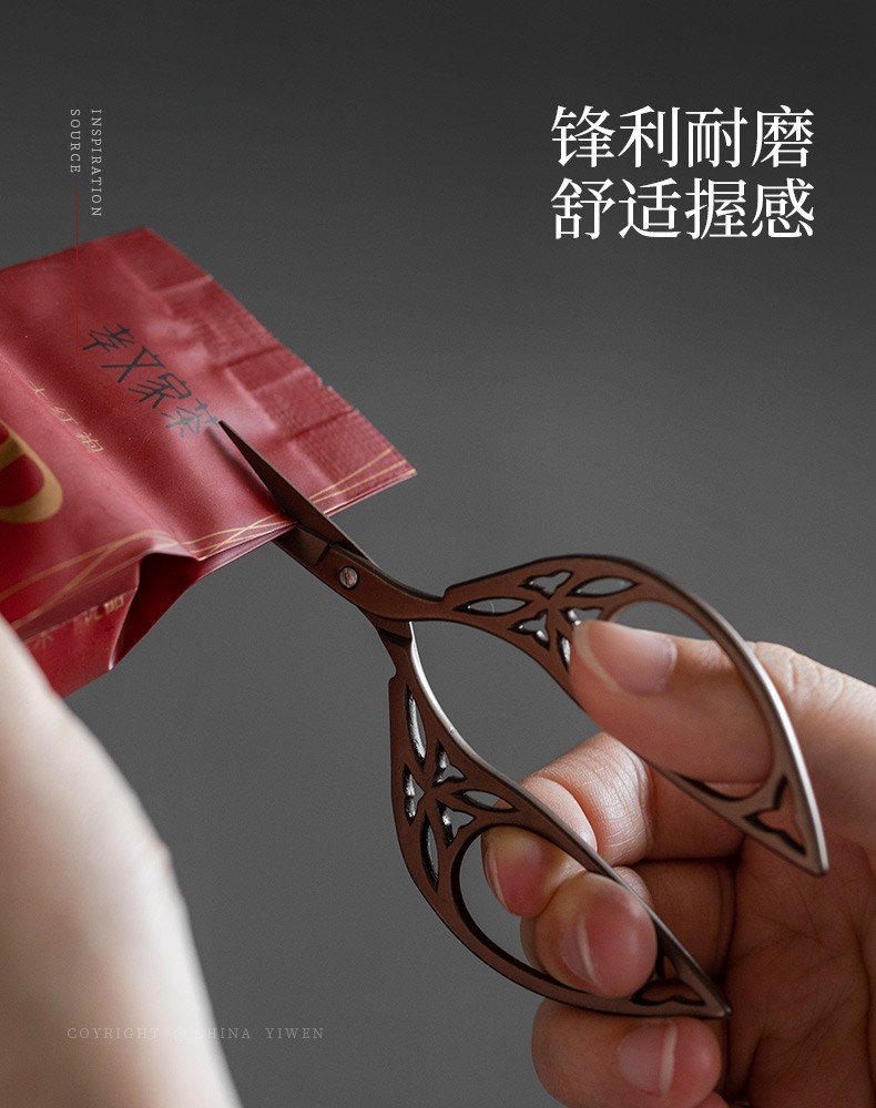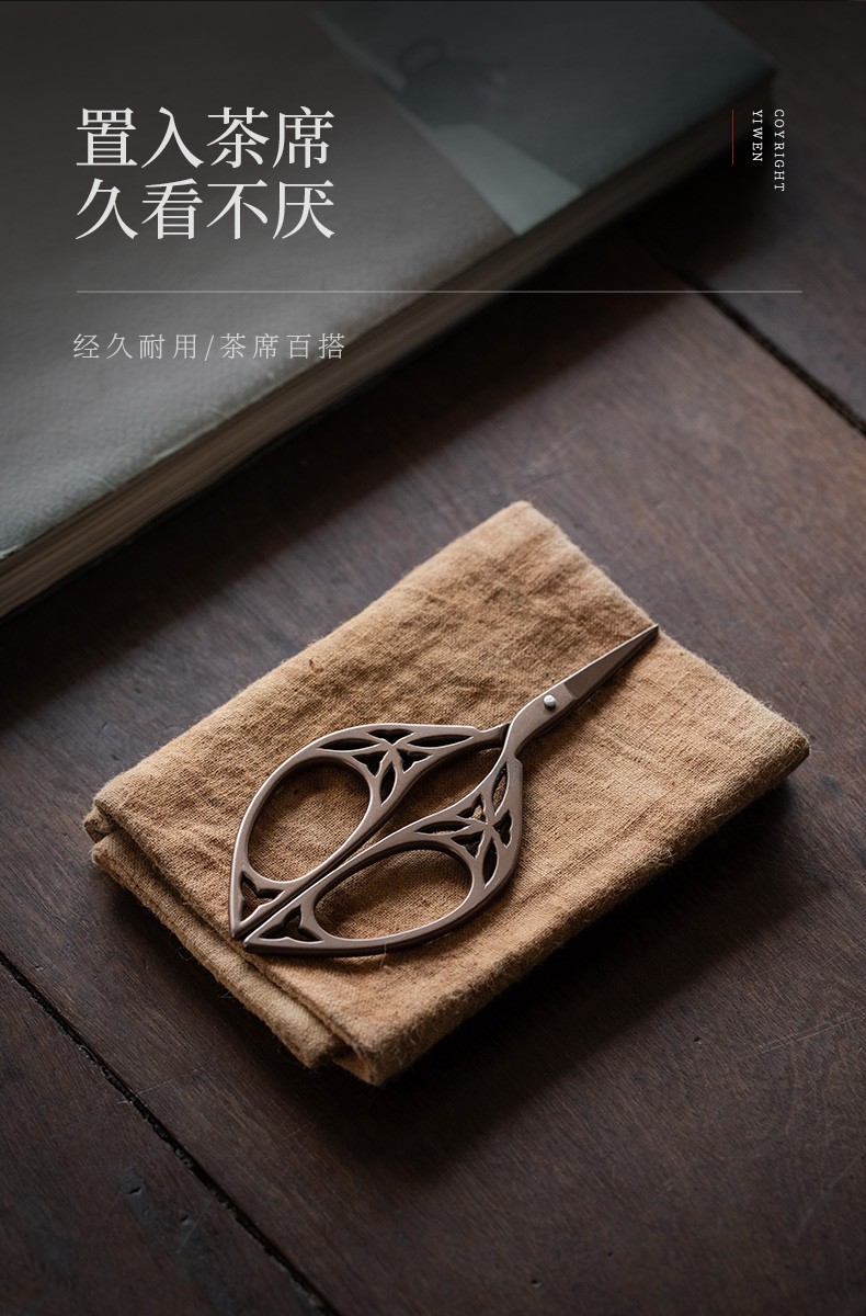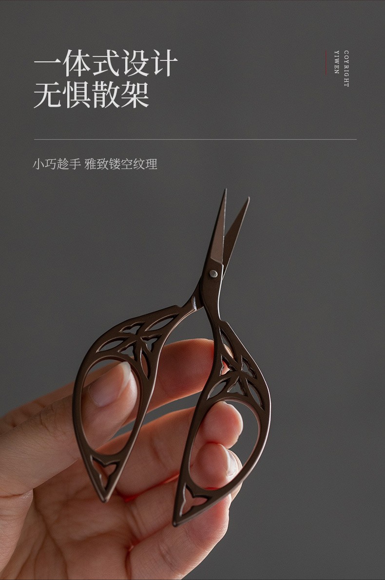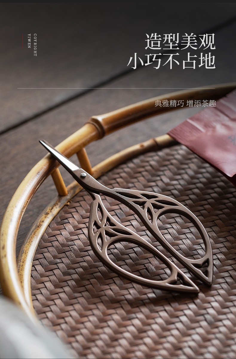 陶瓷茶包小剪刀茶道配件手工剪纸刀钛合金茶叶袋包线头剪子 树叶纹剪刀VQ3a