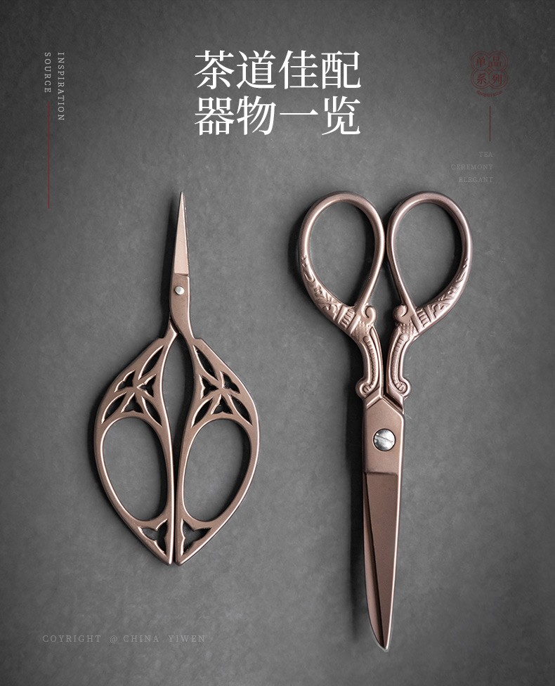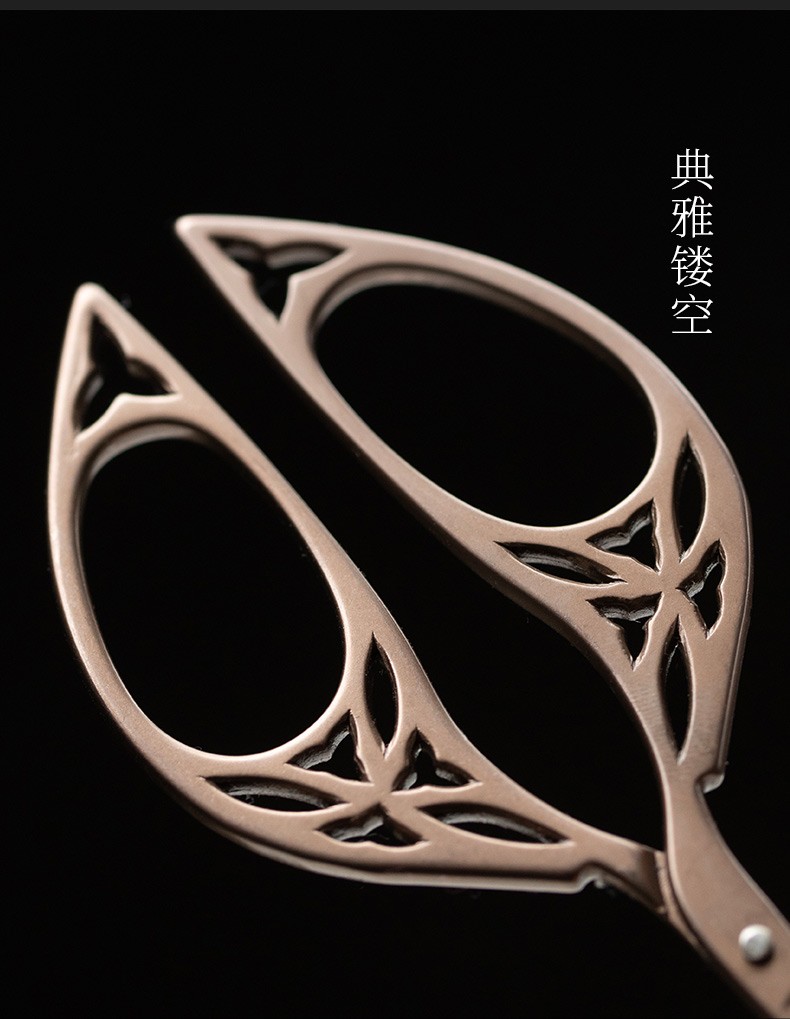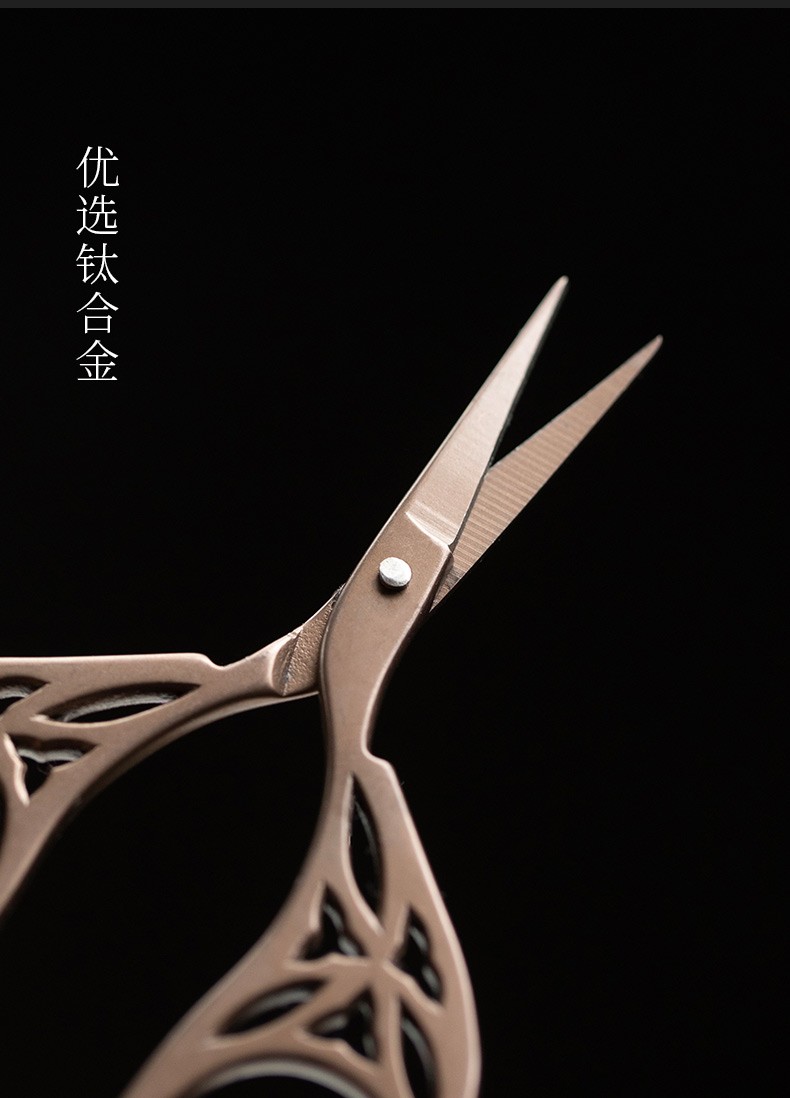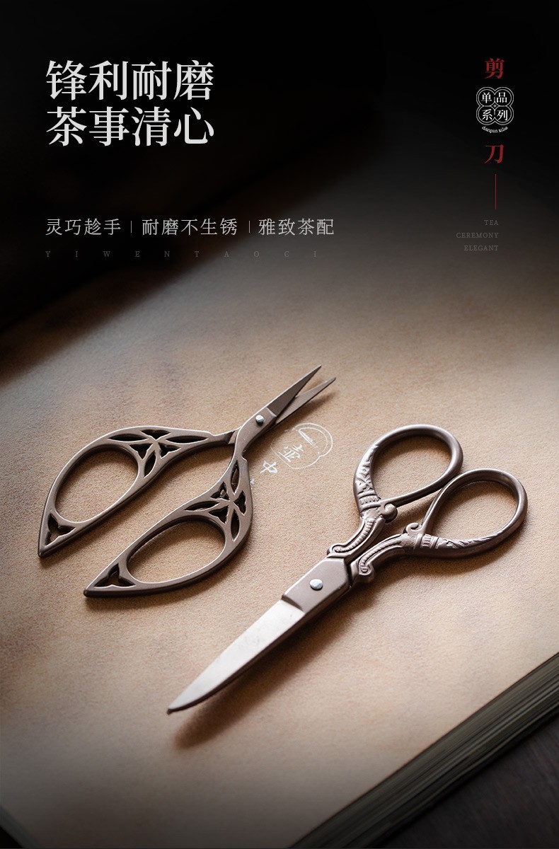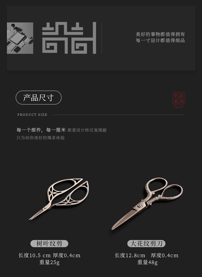 陶瓷茶包小剪刀茶道配件手工剪纸刀钛合金茶叶袋包线头剪子 树叶纹剪刀VQ3a