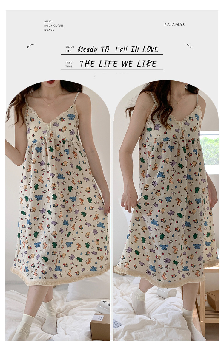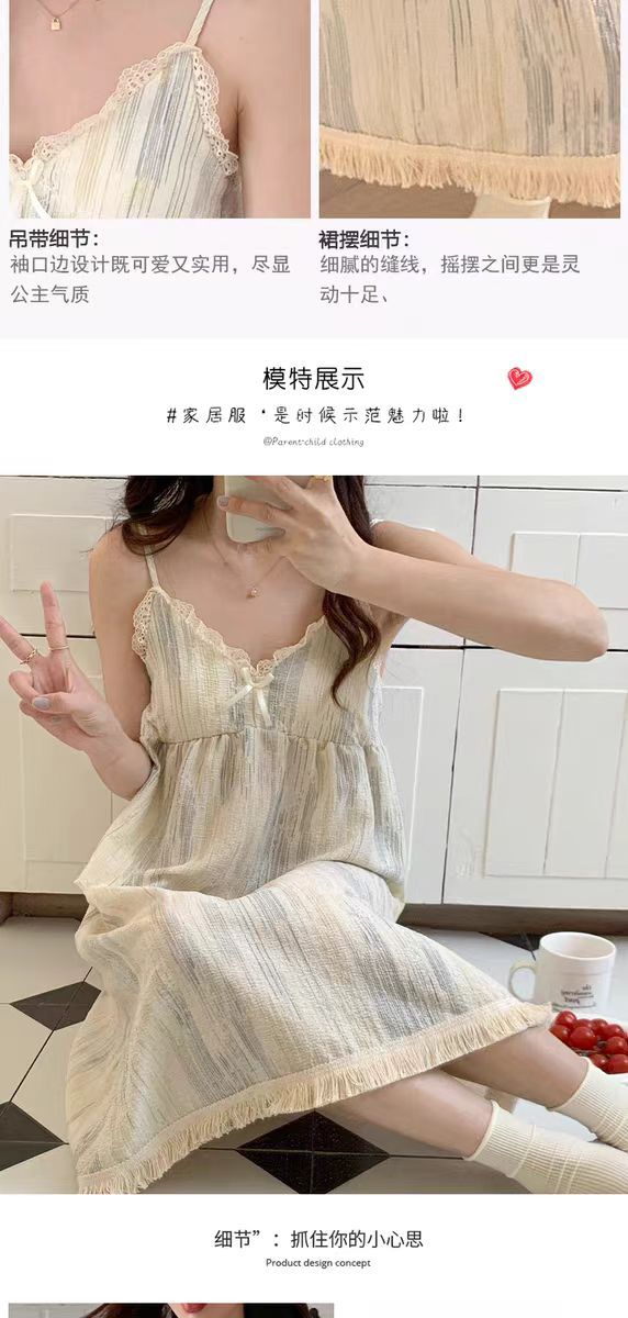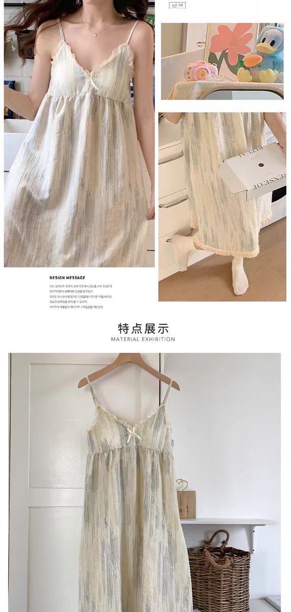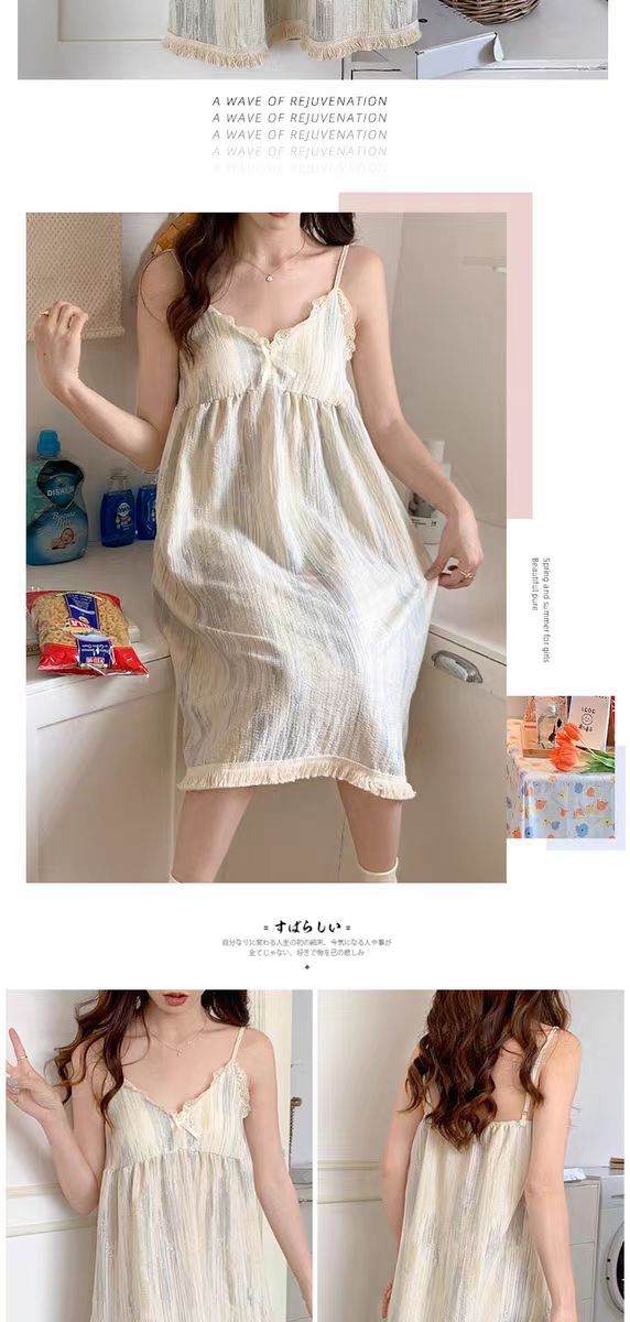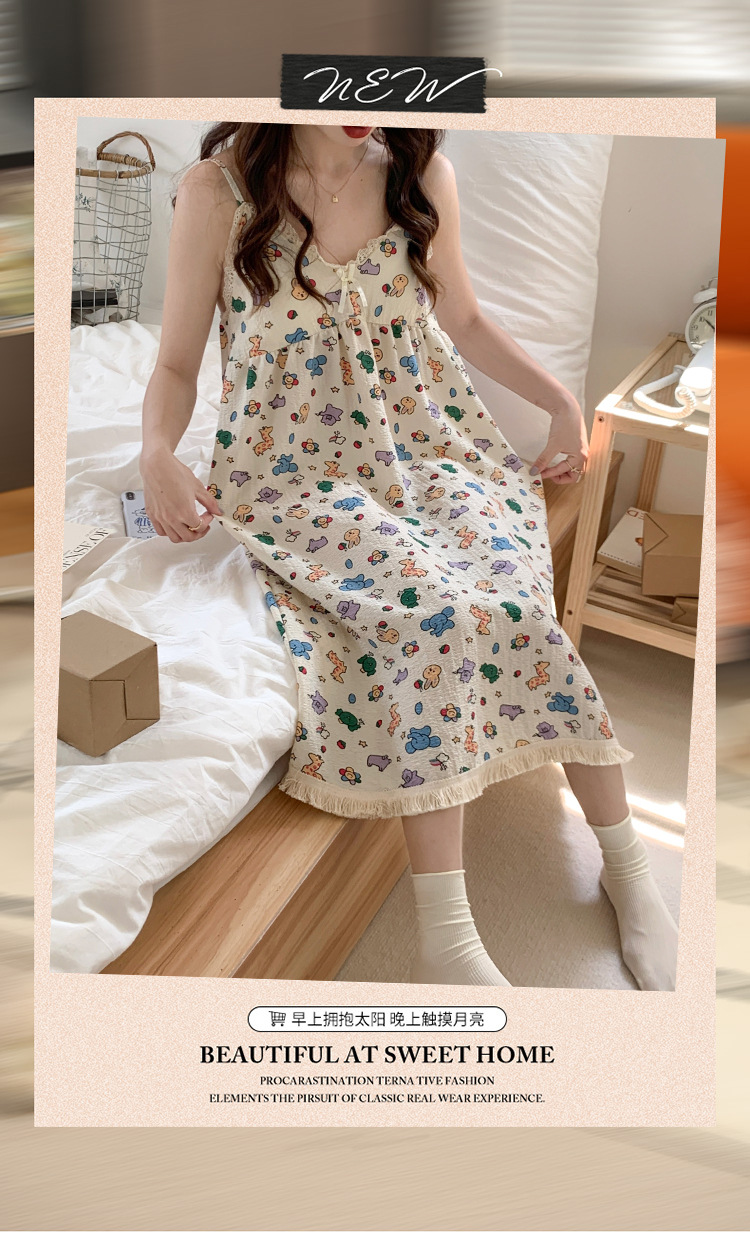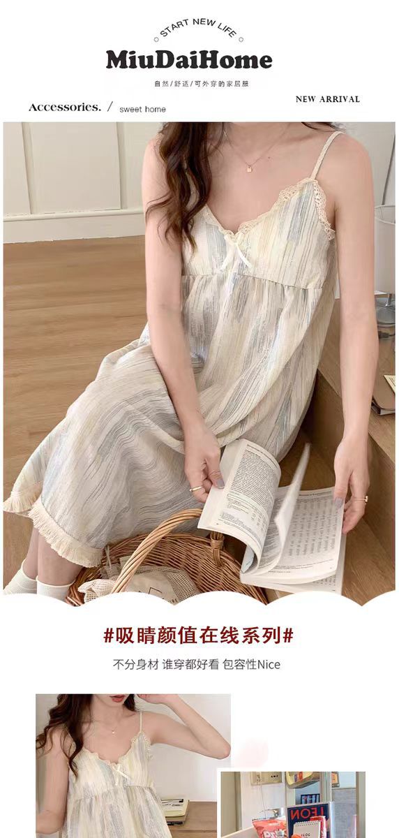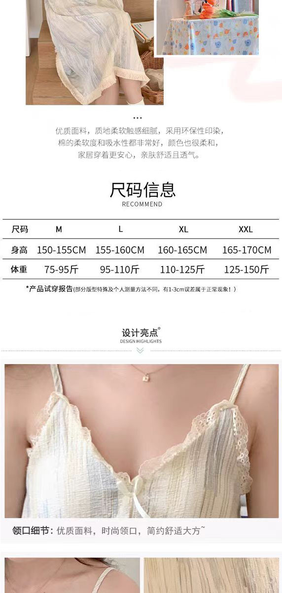 【吊带睡裙不分身材,谁穿谁好看】夏季爆款带胸垫可拆,面料轻薄柔软透气舒适,泡泡棉睡衣女款宽松甜美可爱家居服睡裙QQ
