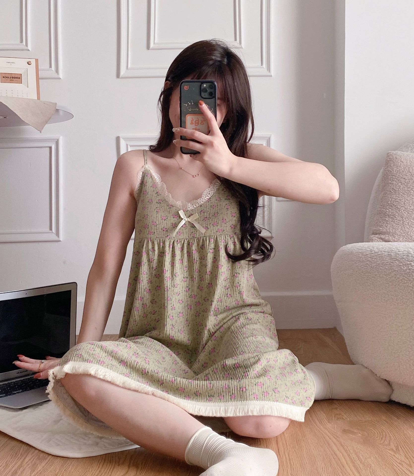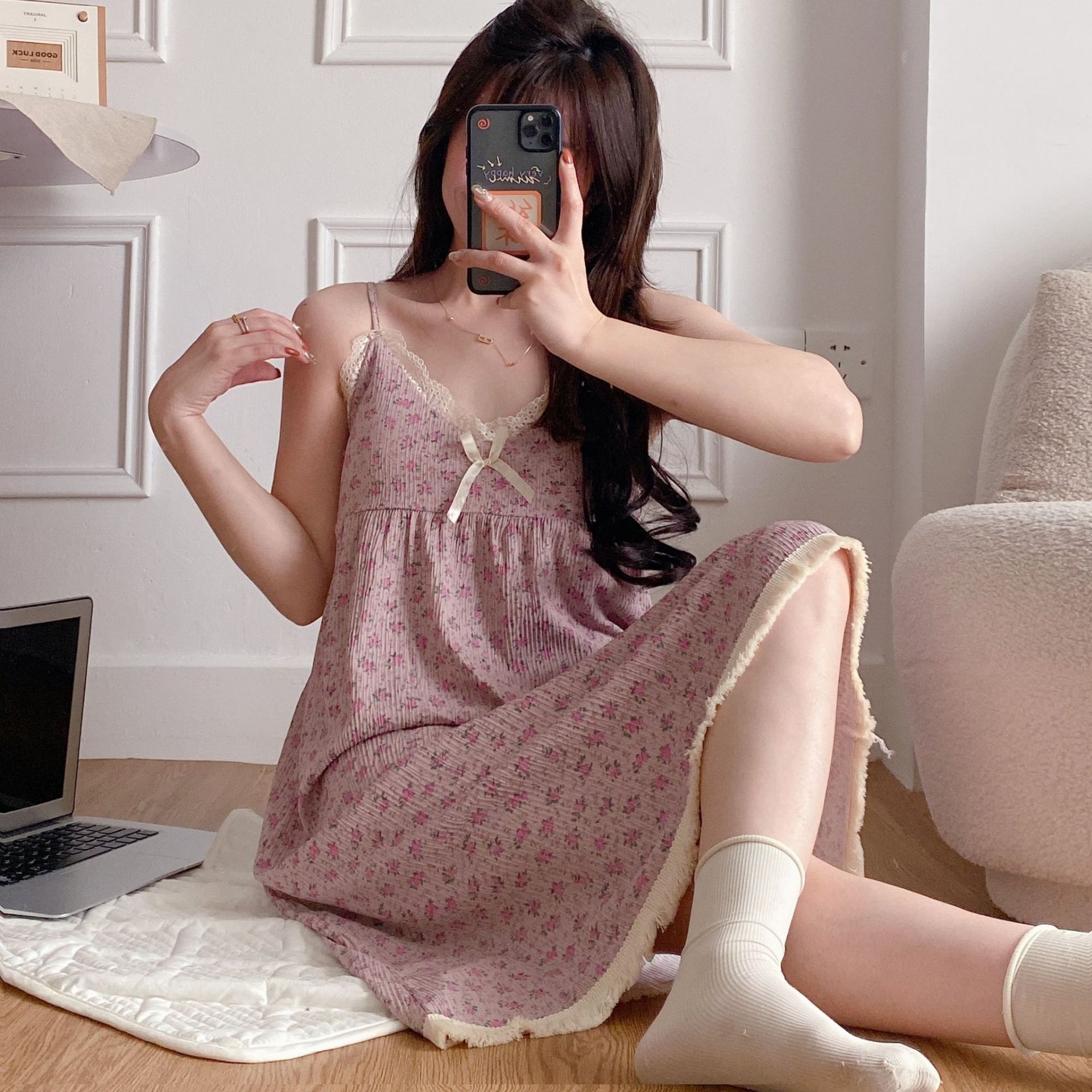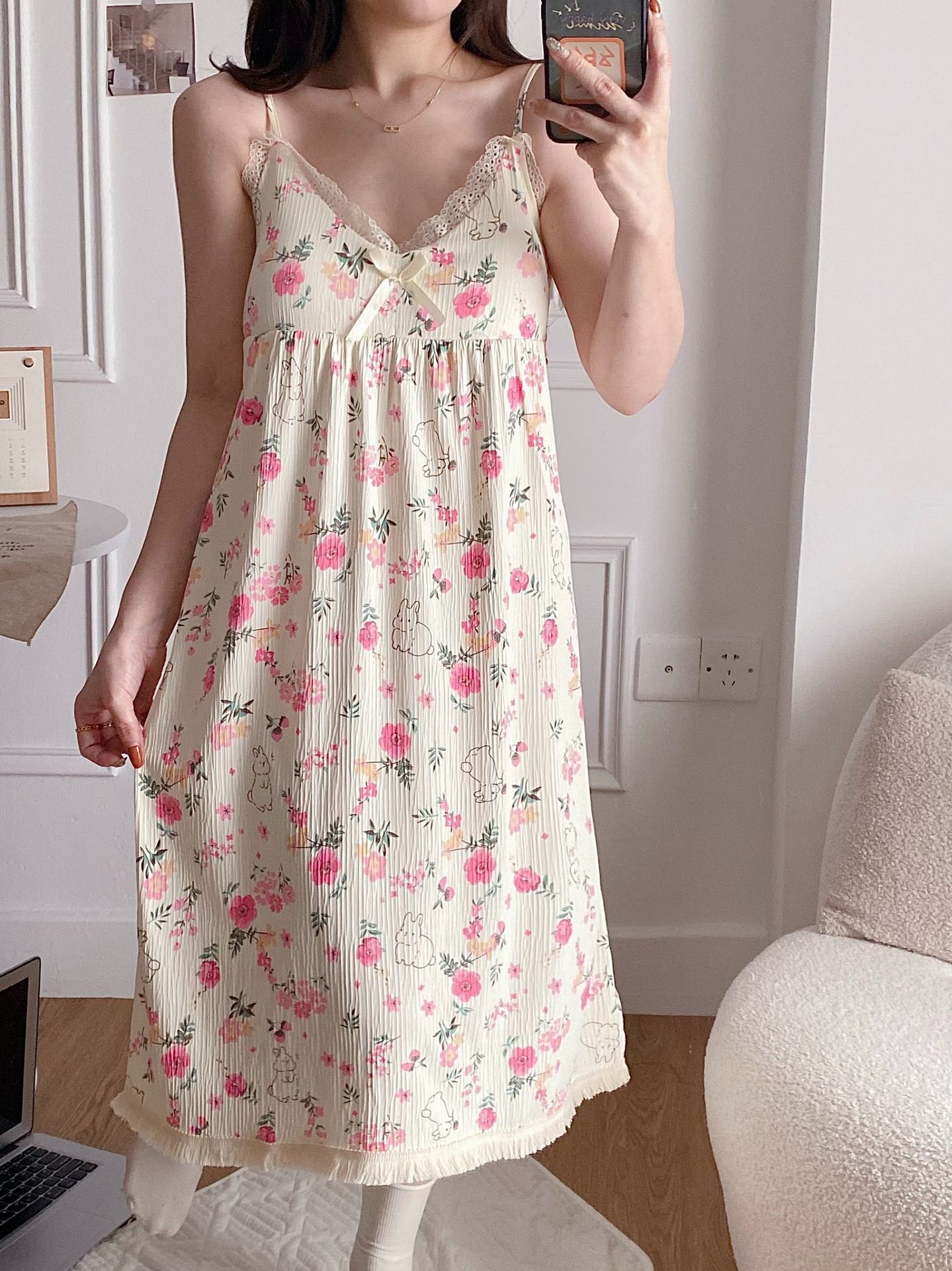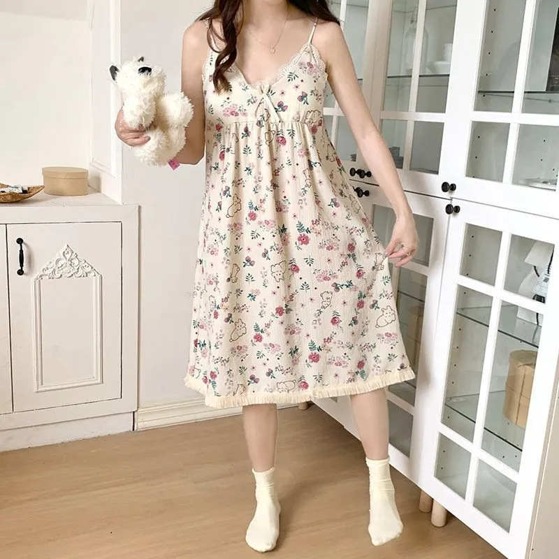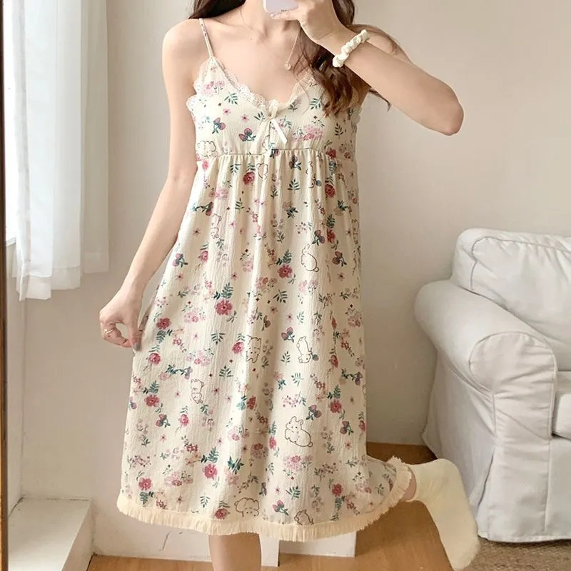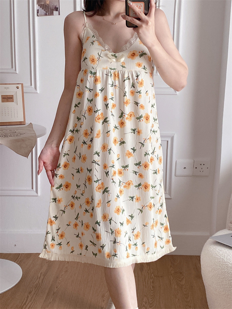 【吊带睡裙不分身材,谁穿谁好看】夏季爆款带胸垫可拆,面料轻薄柔软透气舒适,泡泡棉睡衣女款宽松甜美可爱家居服睡裙QQ