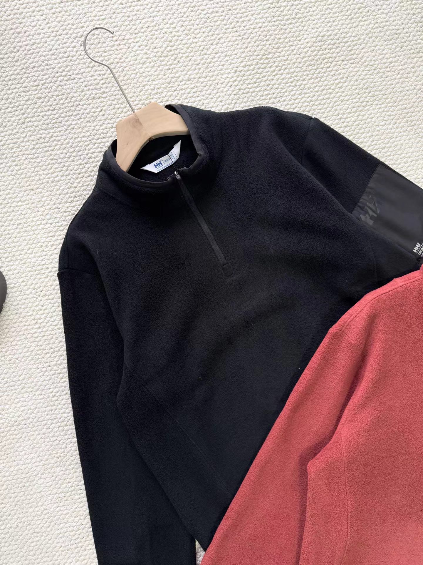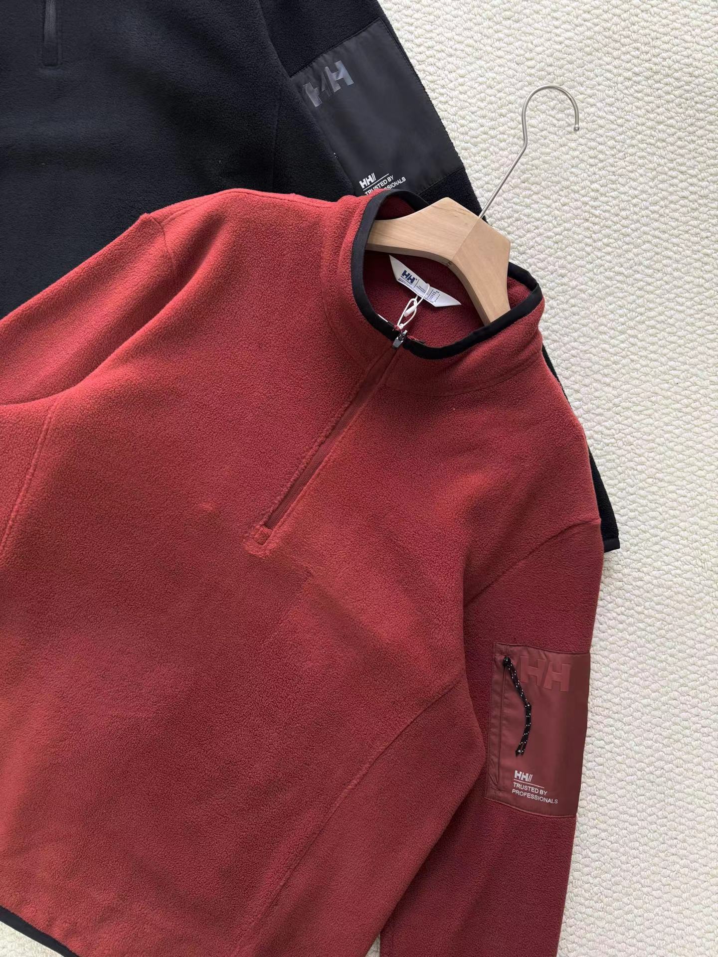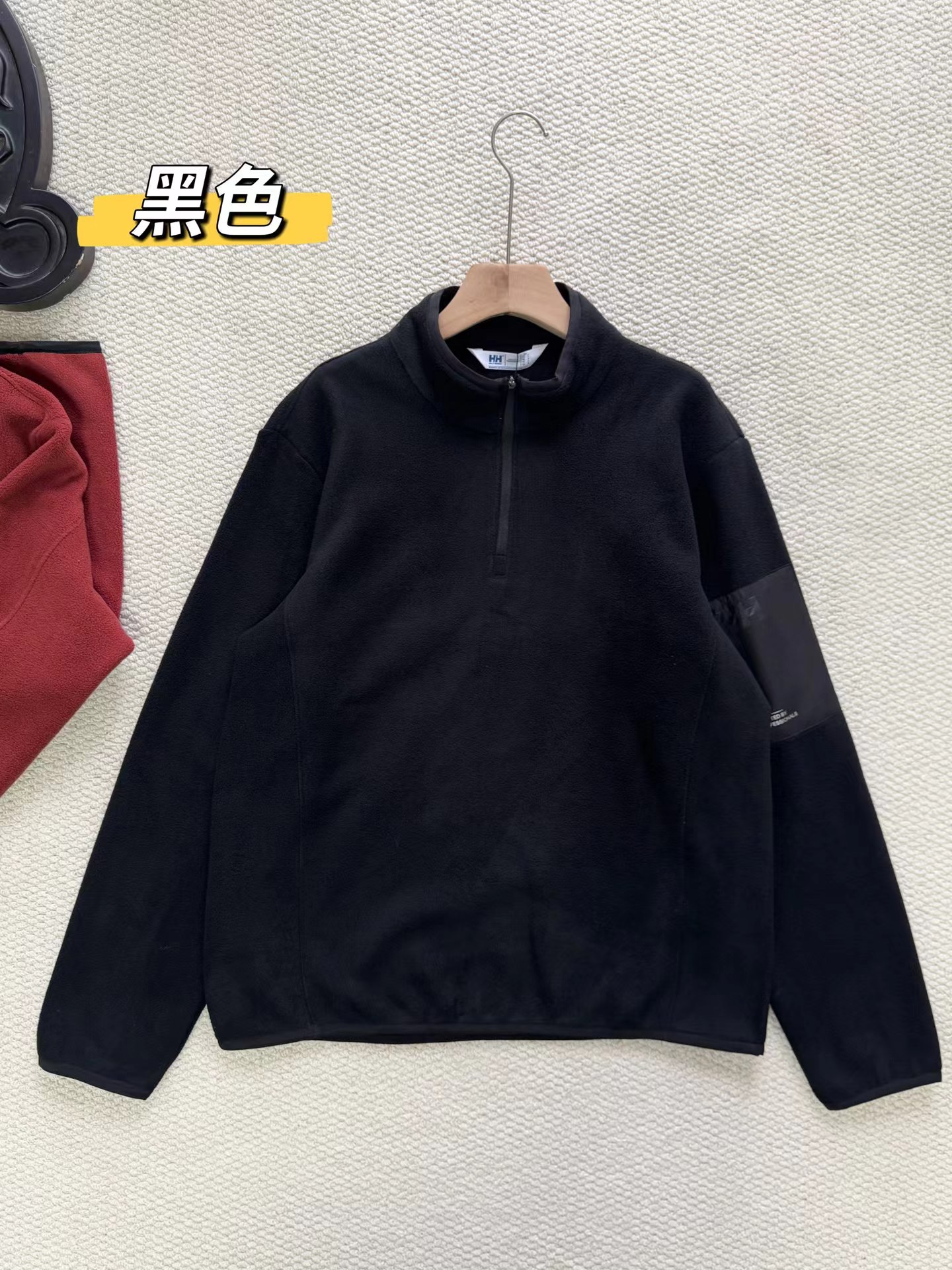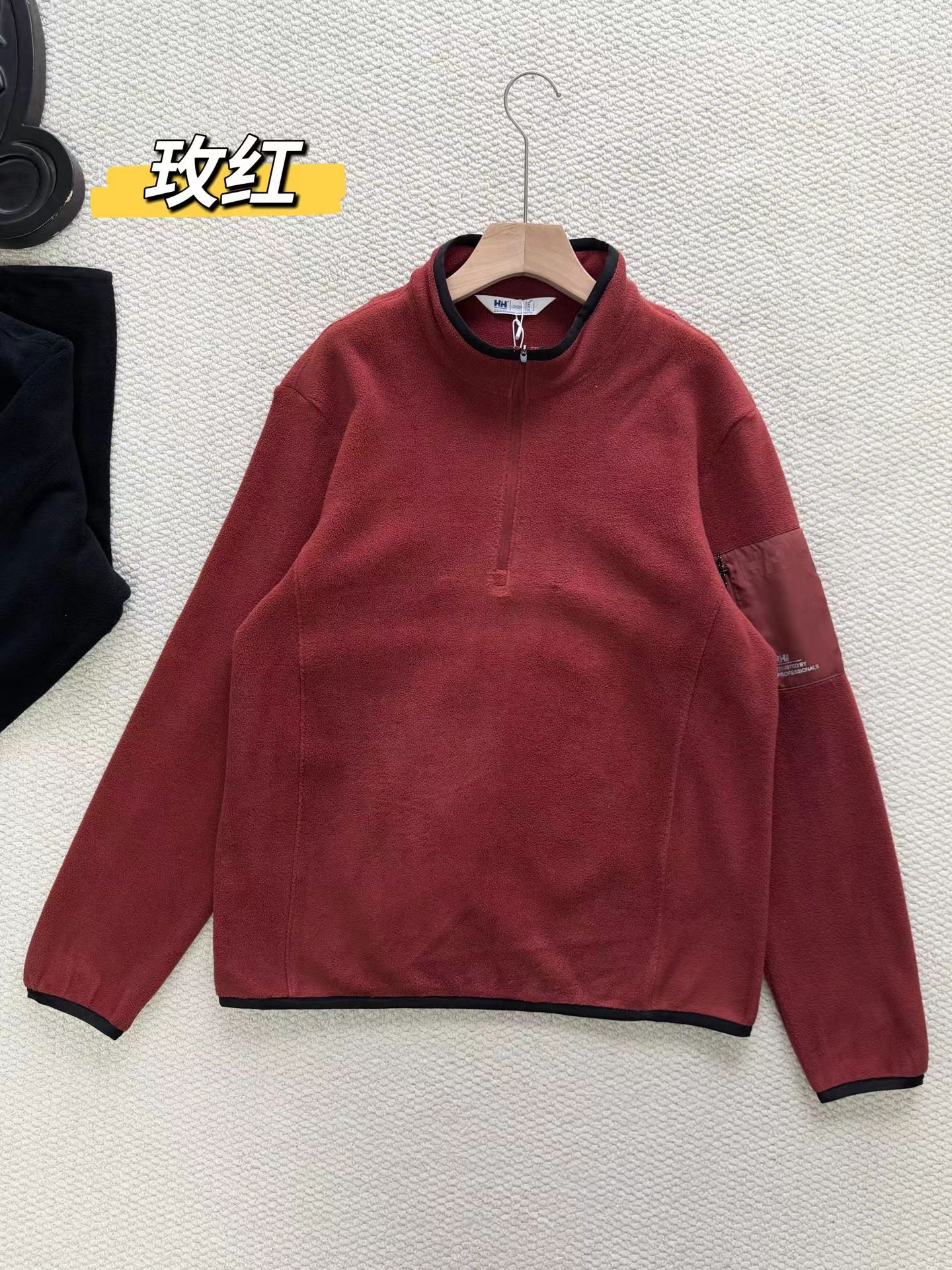 25冬男款POLARTEC抓绒半高拉链长袖宽松套头衫打底 采用意大利进口双面摇粒抓绒面料,特别亲肤柔软,保暖效果比一般打底高数倍,透气性好,并且非常轻量化。摩擦起热无静电。宽松版型!立体裁剪,全身多出拼接而成,上身舒适有型。多种穿衣场景!可以打底,做中间层,单穿都适合!特别实用好穿的一款 半高领半拉链设计,穿脱方便,保暖舒适,好看,左臂梭织拼接口袋,可贴身储物。