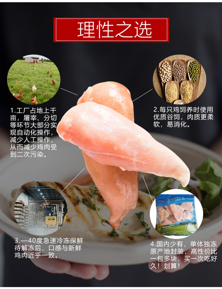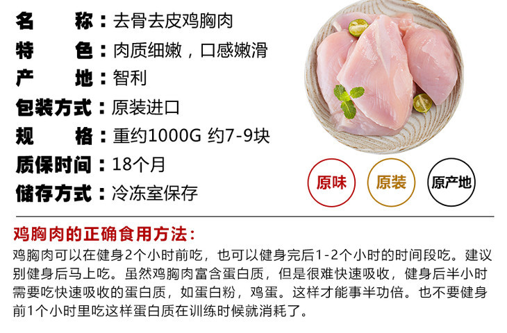 【爱阁鸡胸肉】1kg/袋,产地:智利,约7-9块/袋,58元/袋