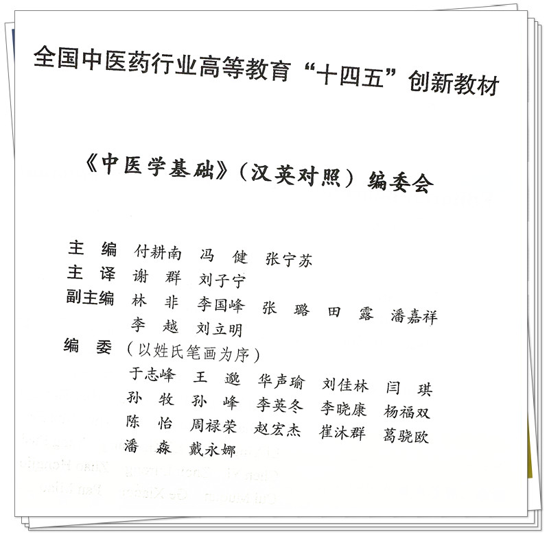 中医学基础:汉英对照 付耕南 冯健 张宁苏 主编 中国中医药出版社 全国中医药行业高等教育十四五创新教材