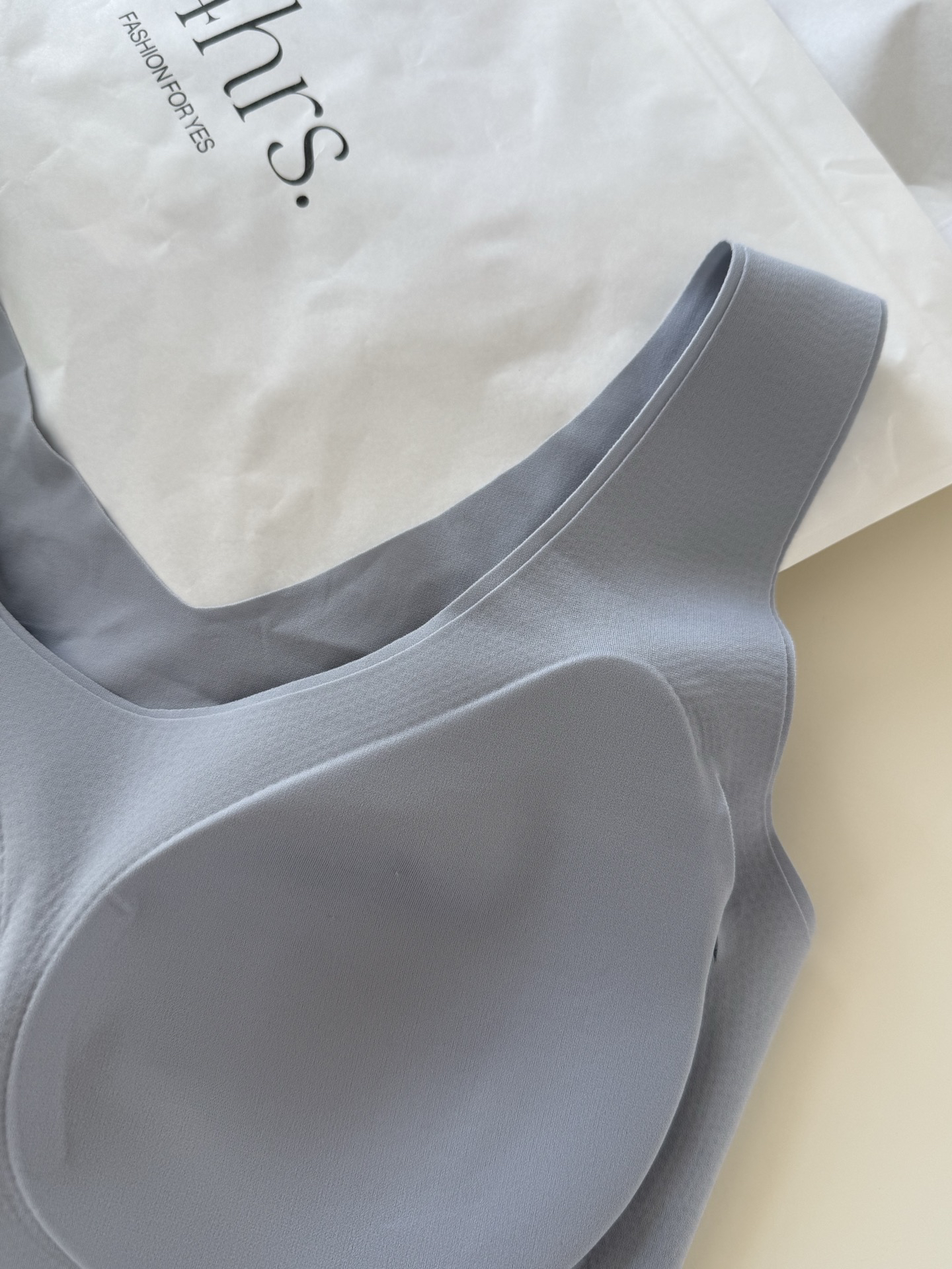 背心款,前部肩部后背一体式裁剪,没有任何接缝,虽费面料但是最大程度的保留舒适感