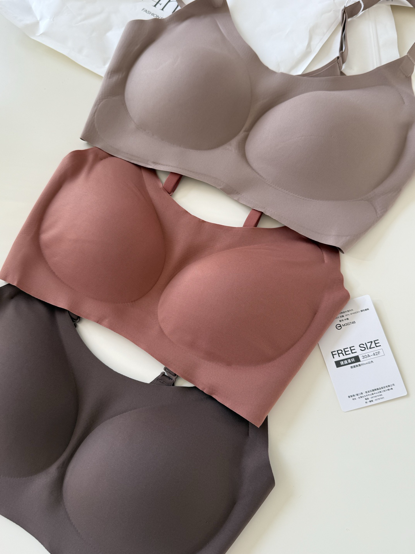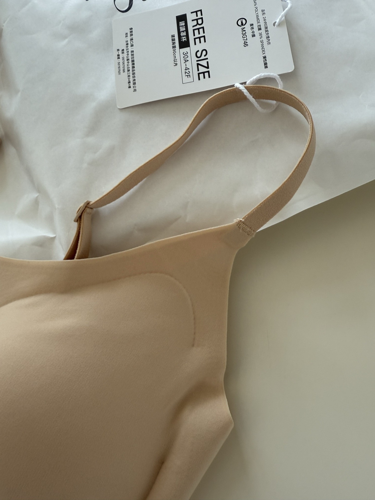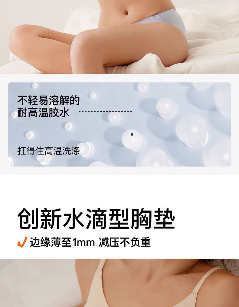 面料15D的超细纱线,软糯亲肤,弹力大回弹性好,久穿不变型不松懈,环保棉的杯垫,触感如粉扑般软弹,喜欢舒适无感的就选它哈