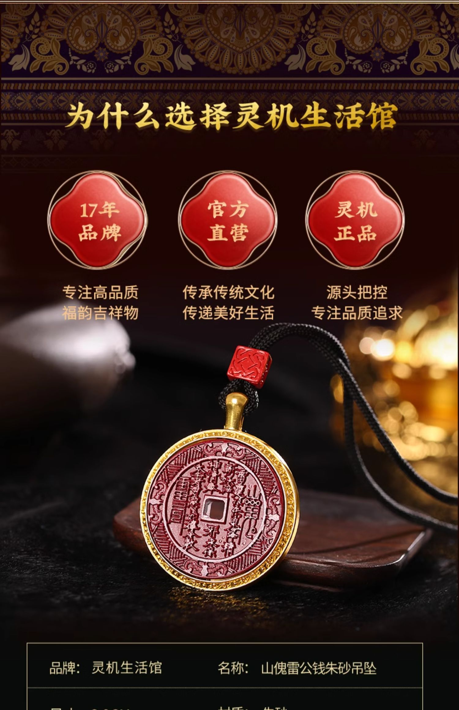 【祈愿吉品】山傀雷公钱朱砂吊坠