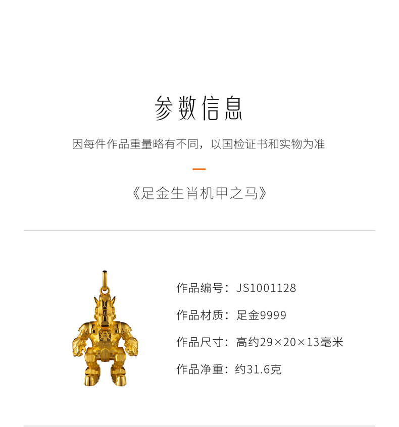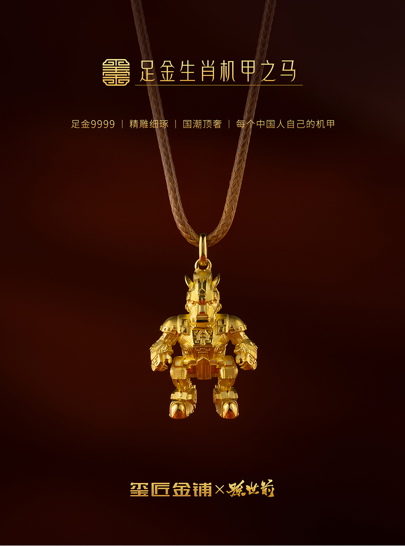 玺匠金铺《足金生肖机甲之马》足金9999 吊坠项链生日礼物