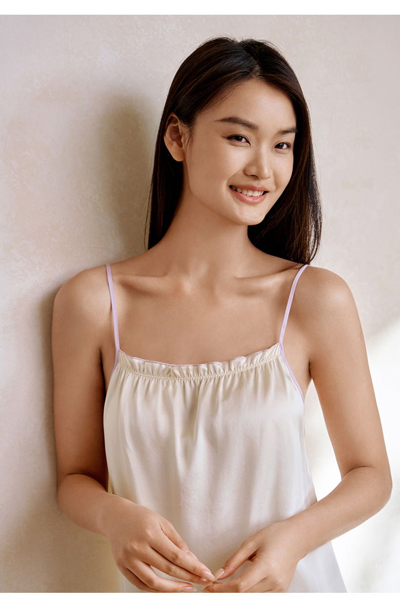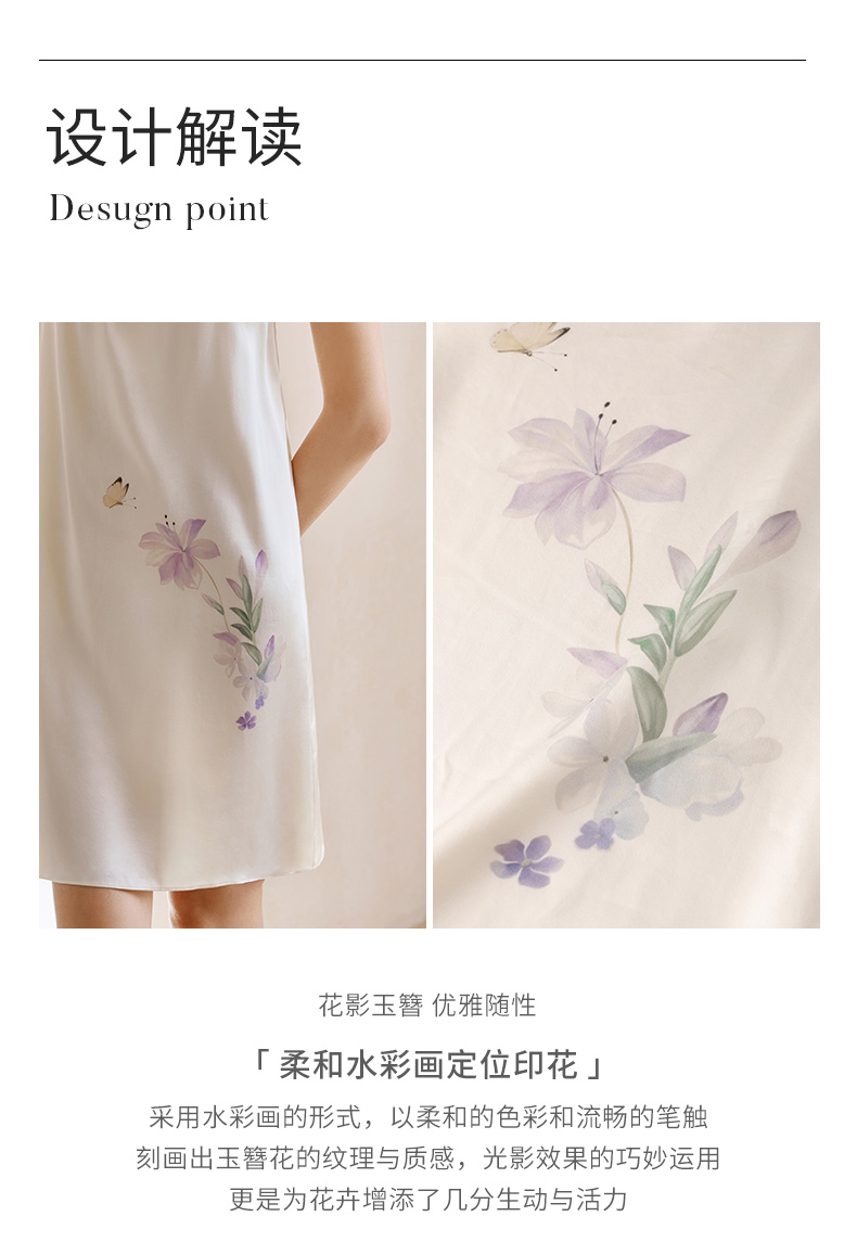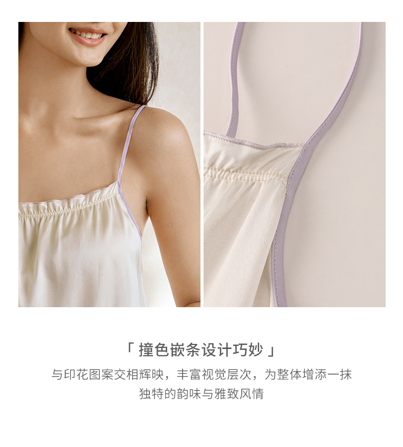 花影玉簪】金三塔重磅真丝睡裙女100%桑蚕丝撞色印花吊带裙家居服 YSFFA303