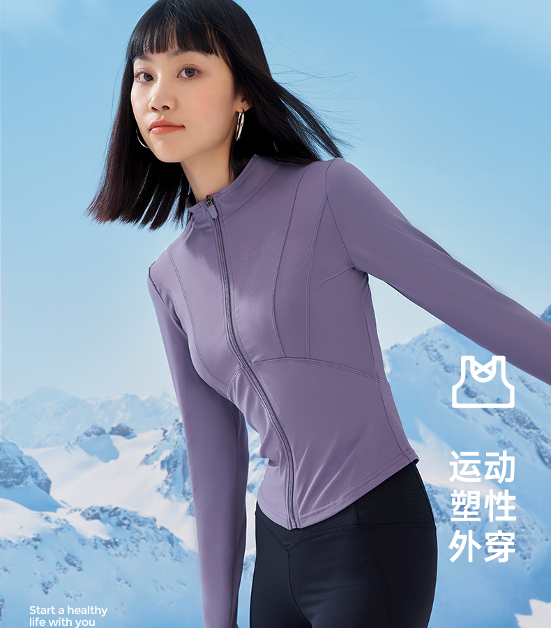 跃牌【化蝶双飞】系列立领运动外套女紧身瑜伽服 无胸垫SYFTM0009(不带胸垫)