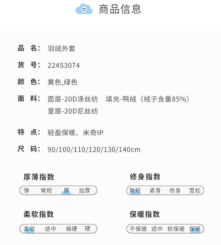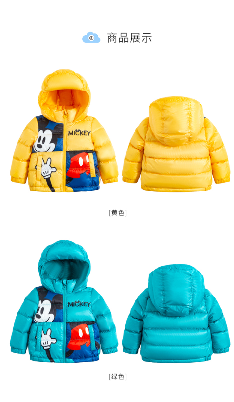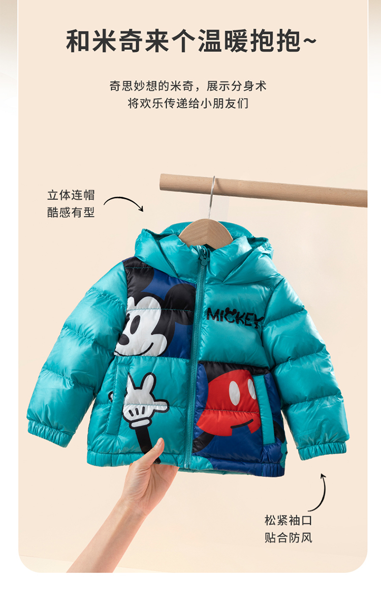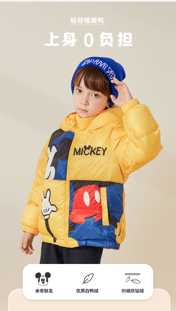 迪士尼联名童装儿童秋冬羽绒服贝贝怡外套男童时尚保暖上衣224S3074