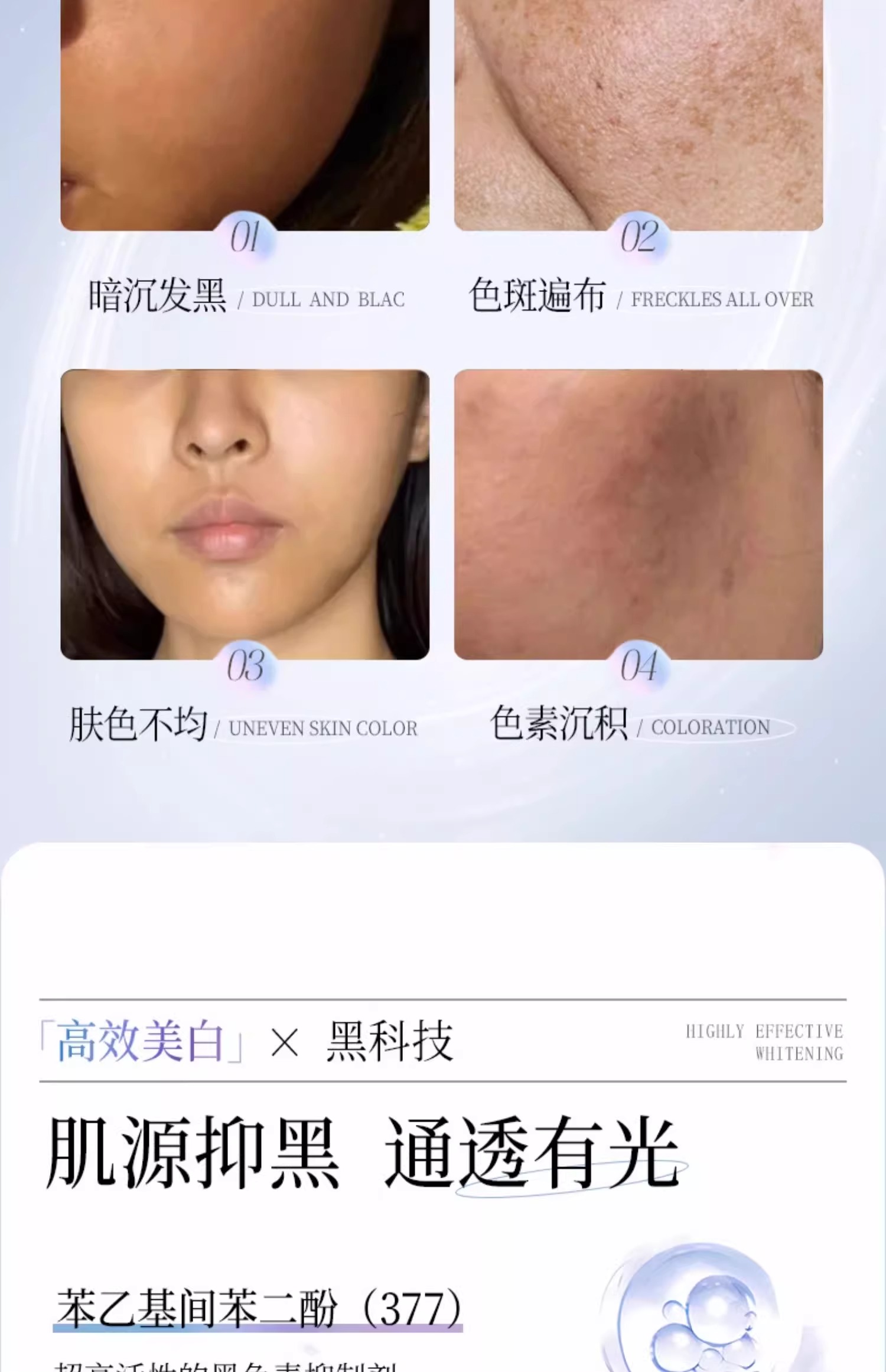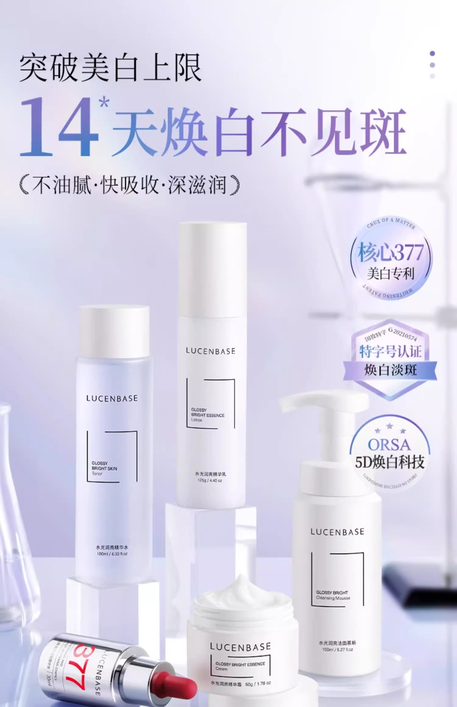 【脸越黄越能白】水光润亮组合#377美白祛斑水乳套装提亮去黄补水保湿护肤品女男官方旗舰店正品(送蛇毒肽晚安冻膜4g×20袋/盒装)