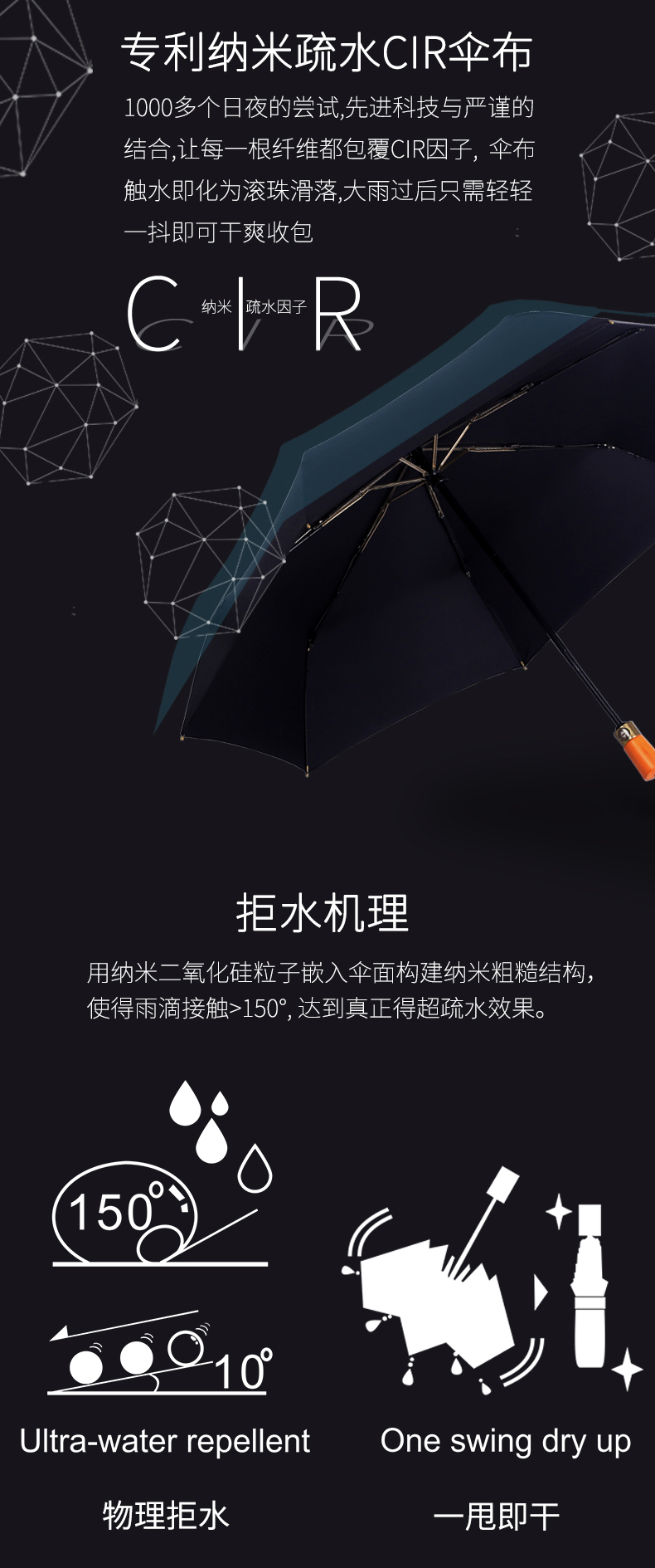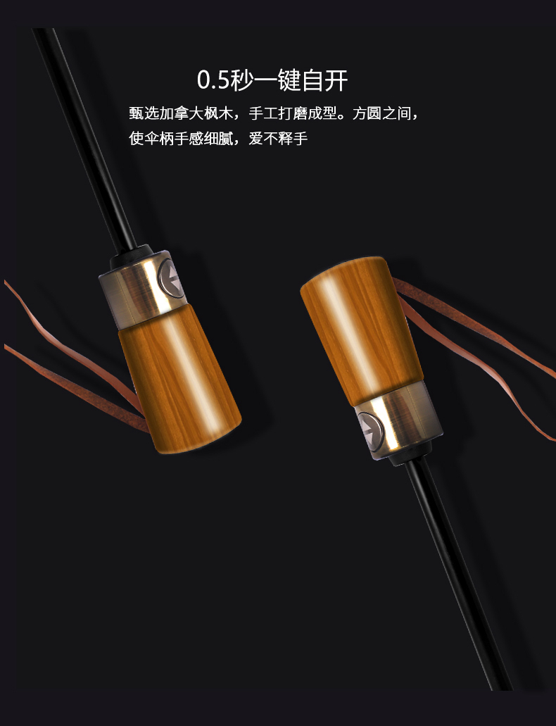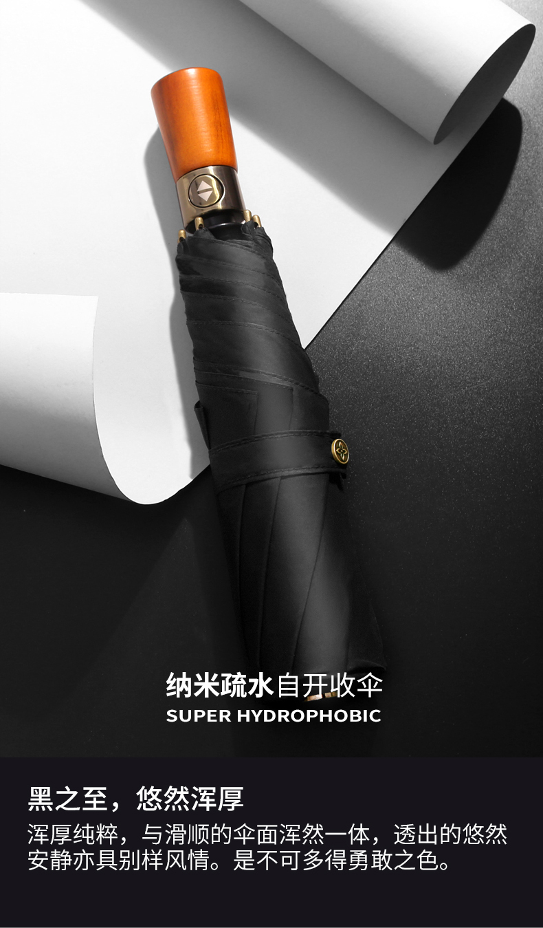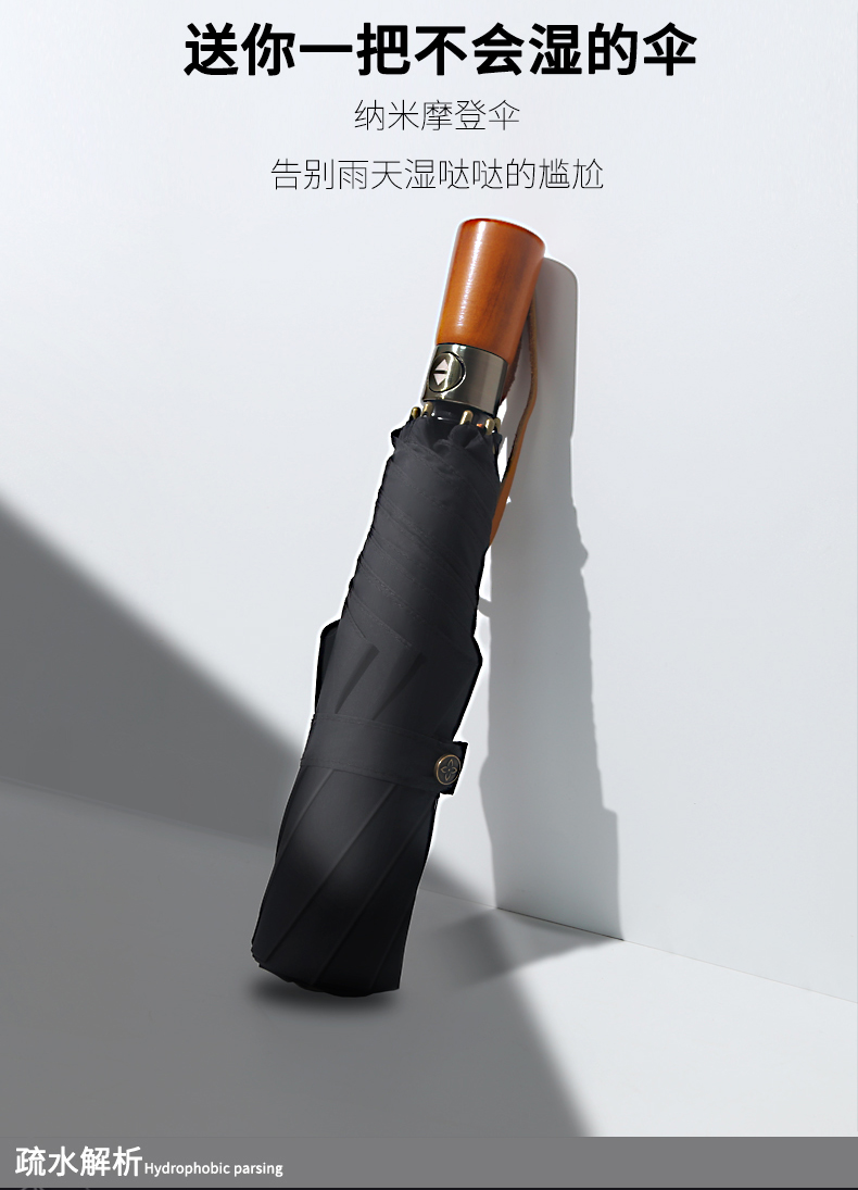 哈瓦那 木手柄大尺寸自动开收 纳米不沾水技术三折伞
