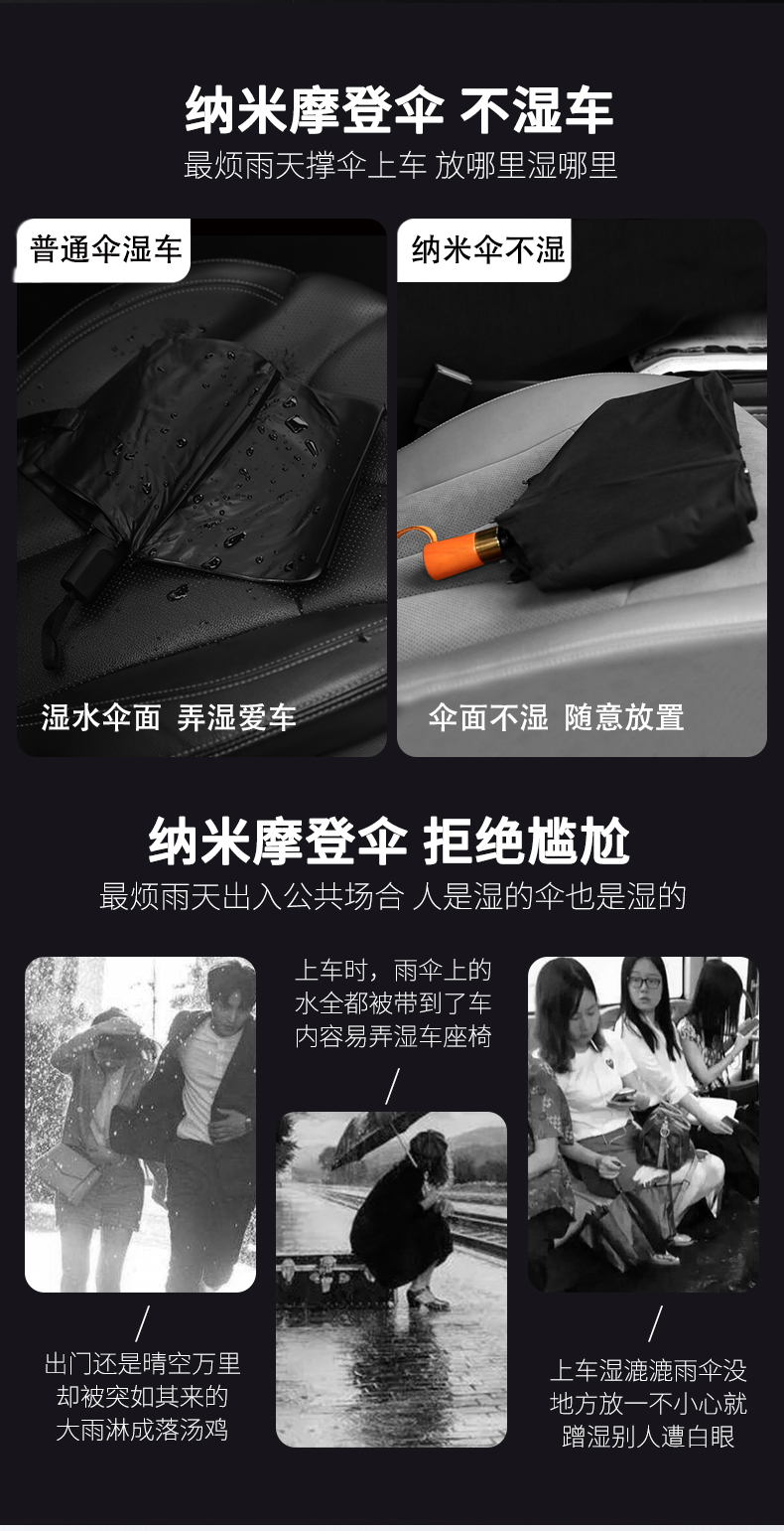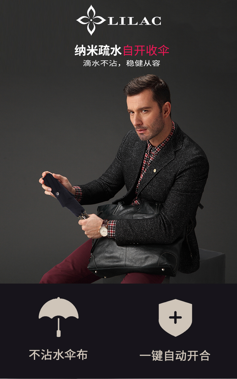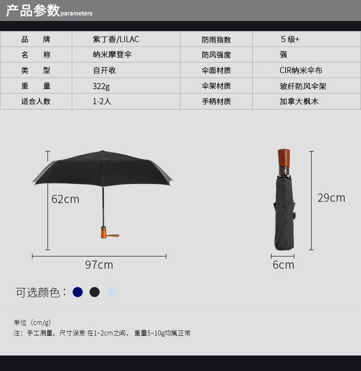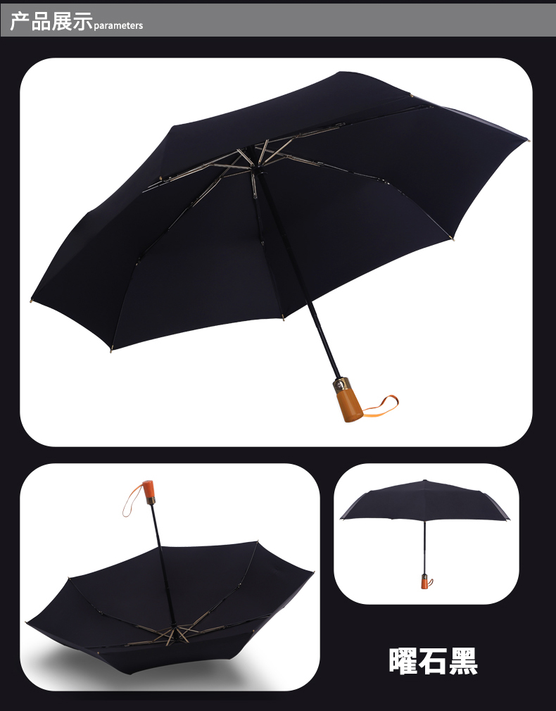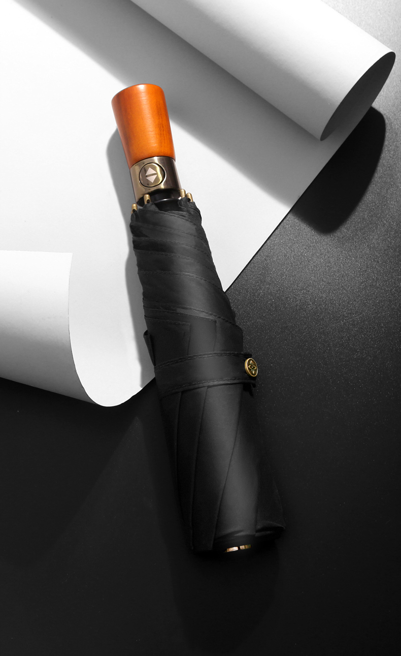 哈瓦那 木手柄大尺寸自动开收 纳米不沾水技术三折伞
