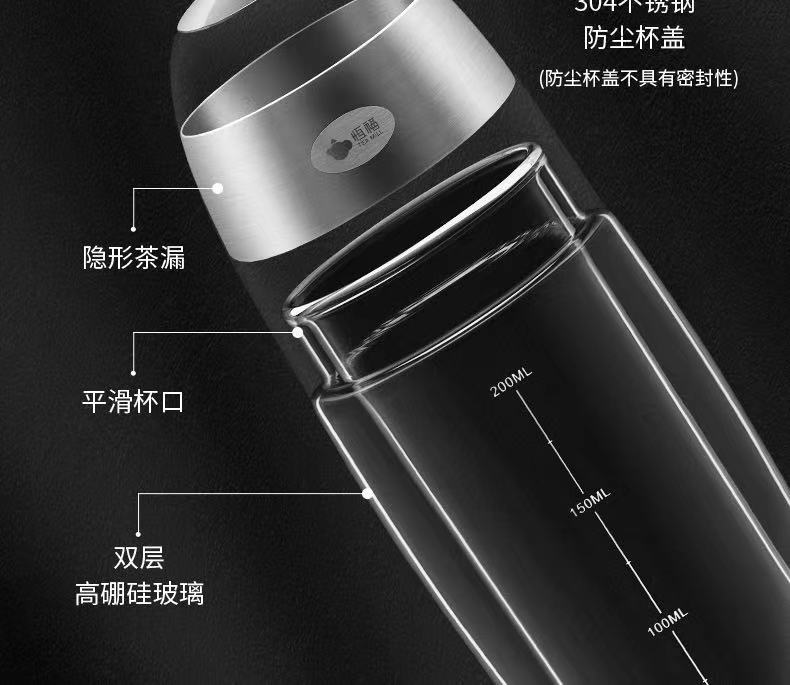 恒福 玻璃茶具 办公泡绿茶专用过滤杯 茶水分离鲜茶杯