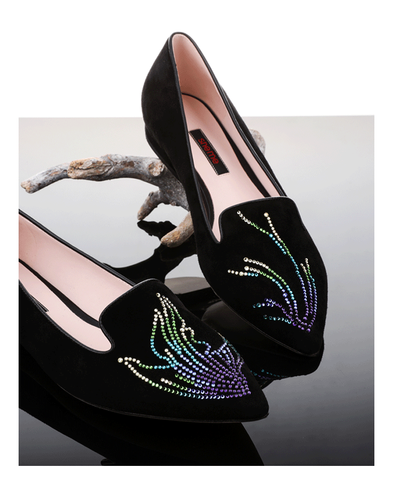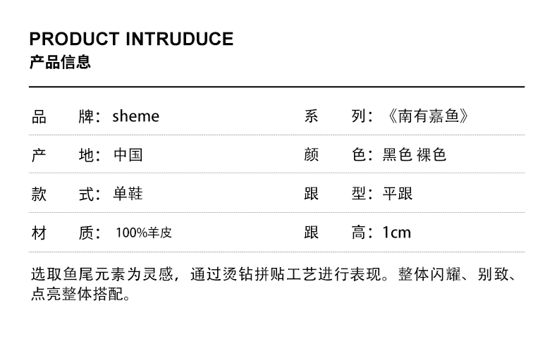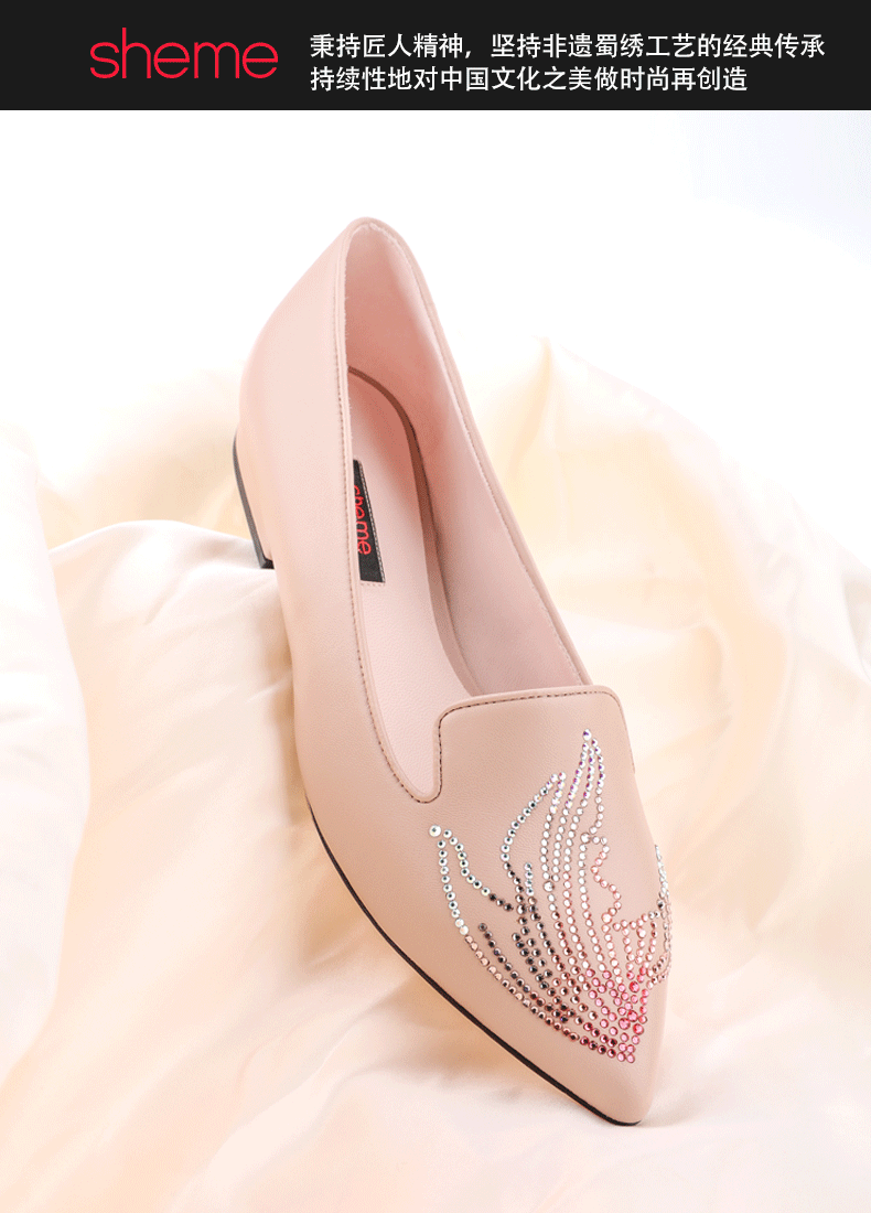 sheme《诗经》系列之《南有嘉鱼》原创文化设计真皮女鞋商务经典烫钻尖头平底单鞋