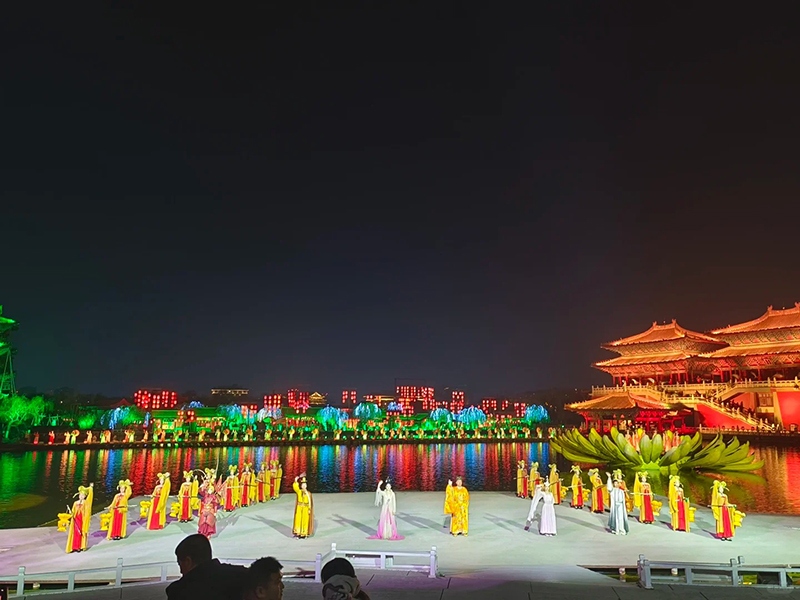 - 自愿选择参观大型实景演出《大宋•东京梦华》(费用自理),由几首宋词串联而成,演绎了北宋的兴衰和市井文化。整部演出既有气势恢宏的水战,也有温婉可人的词人悲情。最为印象深刻的是,穆桂英骑着白马在舞台中央铿锵的唱着古词,让人有热血沸腾,洒血沙场的壮烈。