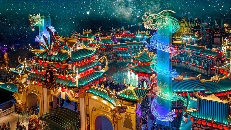 清明上河园高度还原清明上河图布景,由八个功能区和四个文化区组成。南苑再现了北宋东京的市井百态,北苑则表现宋代皇家园林和宫廷娱乐,园内的宫廷景观建筑金碧辉煌。园内工作人员皆穿着宋代服饰,仿佛穿越时空一般,除此之外还有精彩的场景演出和民俗表演。