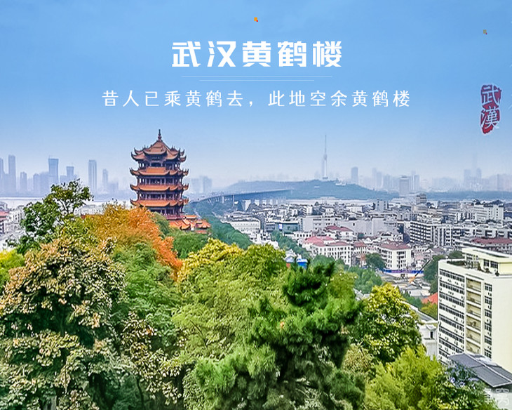 - 早起后继续出发,下午到达武汉,先前往酒店办理入住。之后我们先游览"江南三大名楼"之一的【黄鹤楼】。