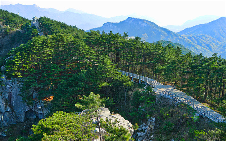 3.天屏峰景区:到海拔1605米的天屏峰景区、看看江淮分水岭、鄂皖交界地、石佛、马头峰、骆驼峰、鲸鱼出海、金狮啸天、五龙朝天、梦笔生花、剪刀石、白象戏水、情侣峰等