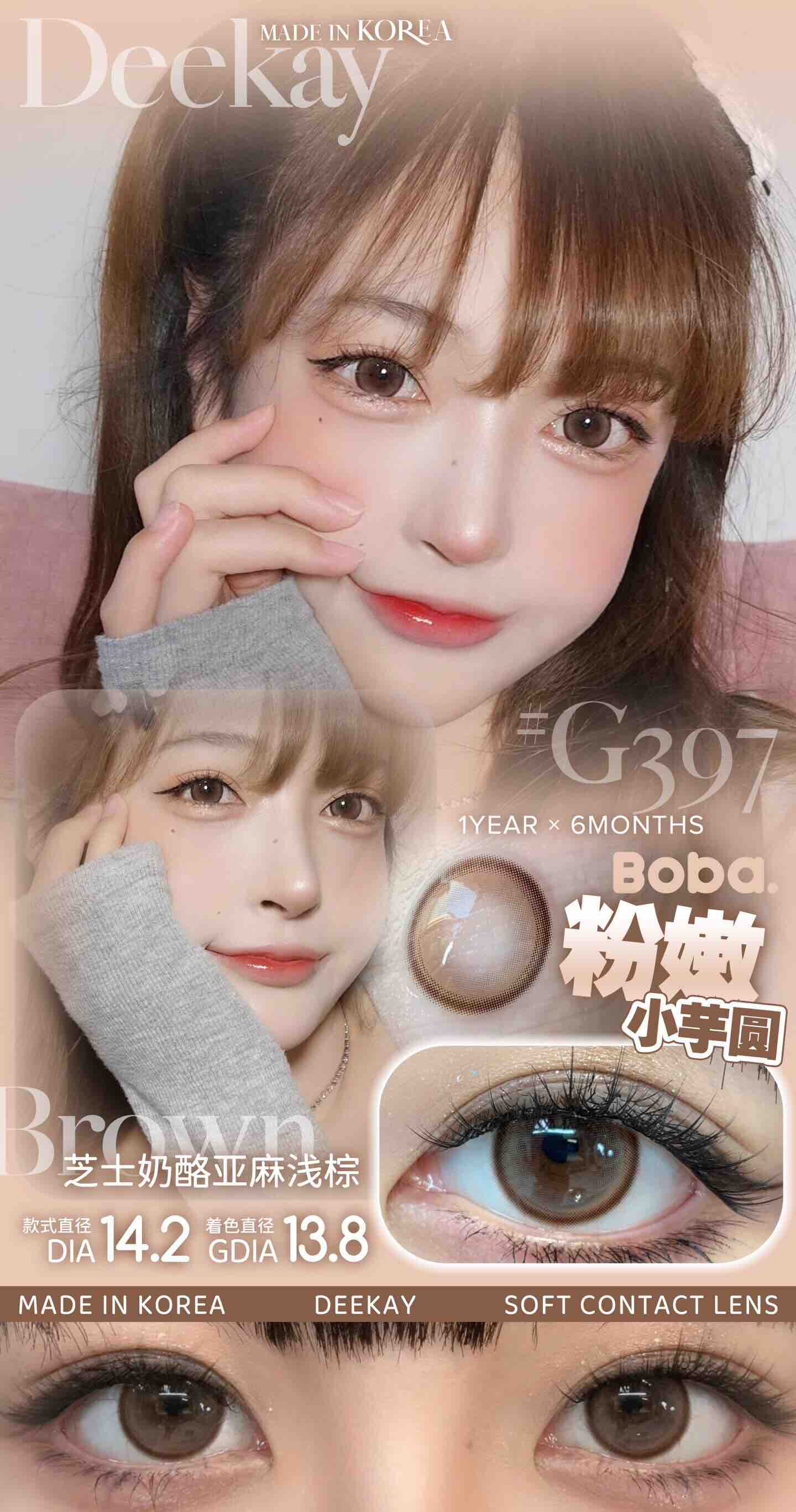 【敏感眼专用】DEEKAY G397棕色 硅水凝胶 直径14.2 商品缩略图0