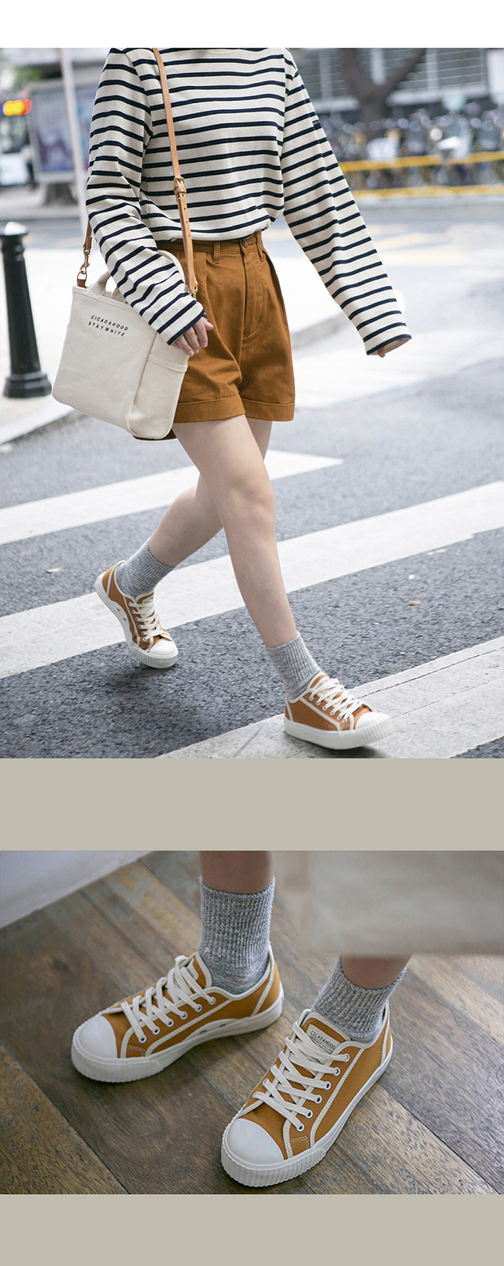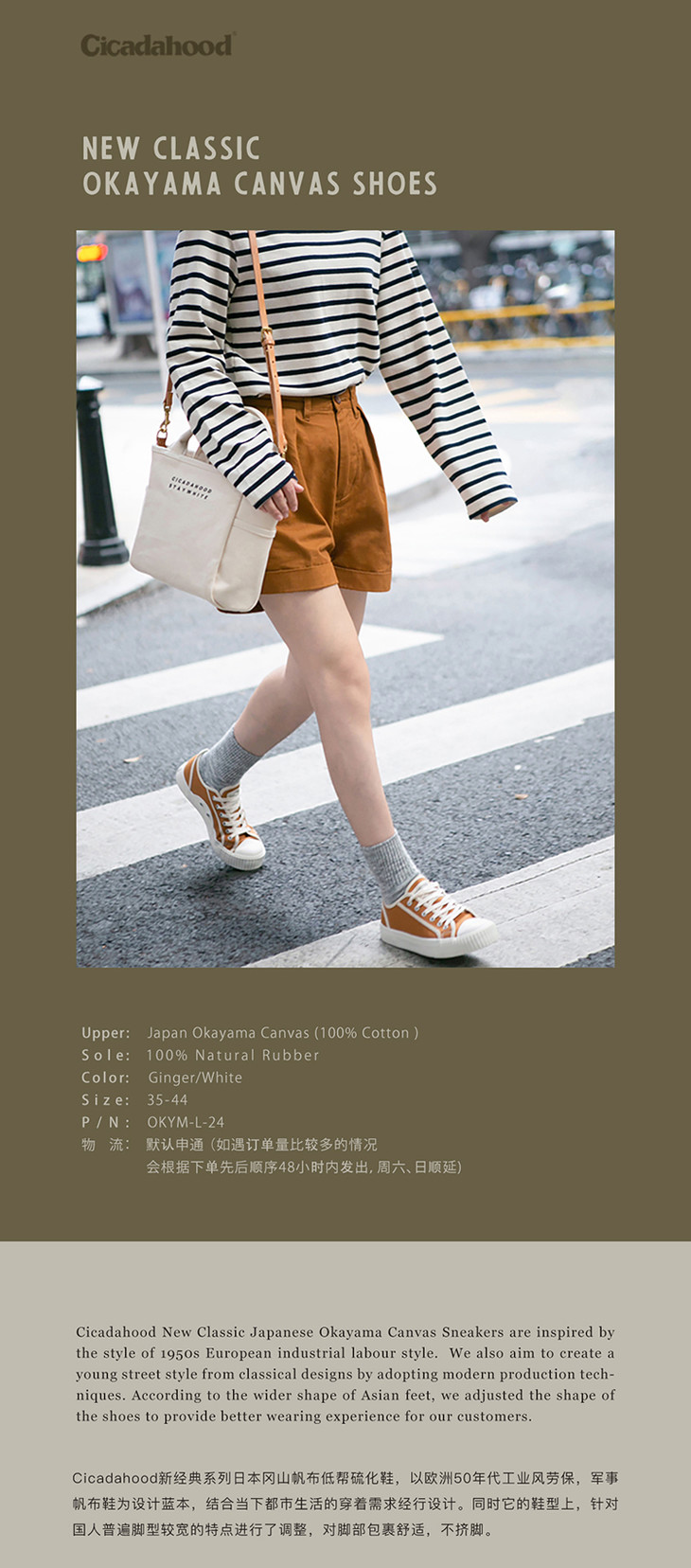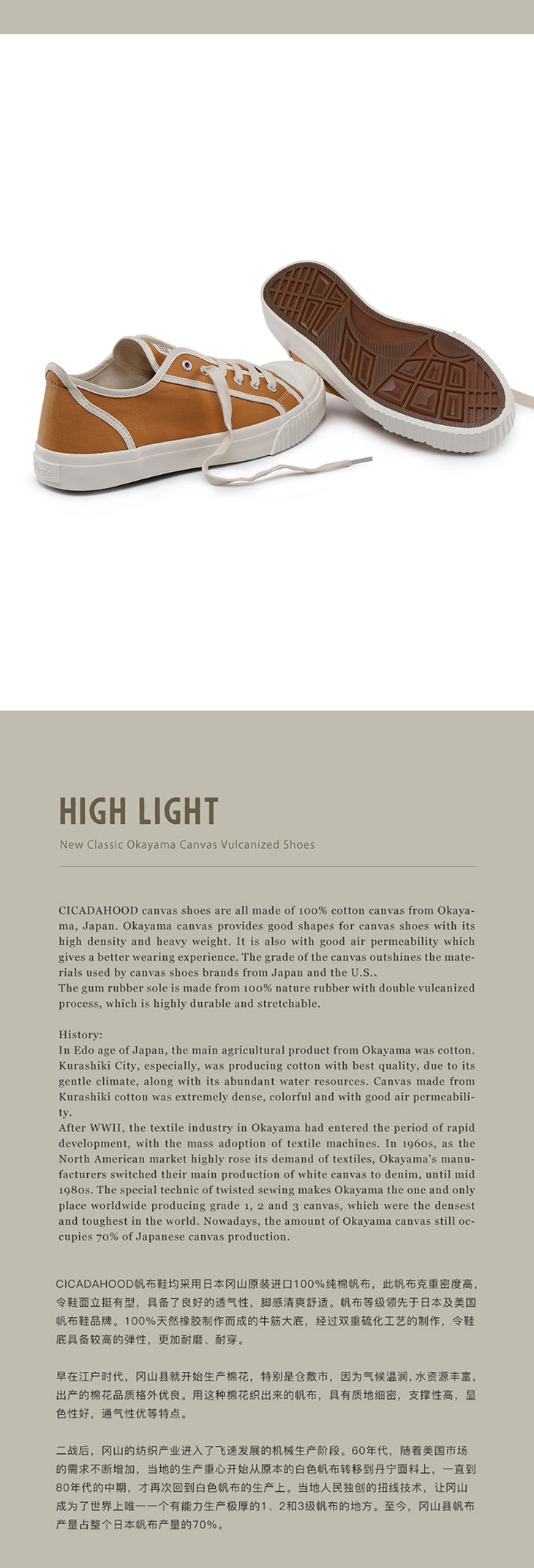 Cicadahood日本冈山帆布低帮硫化鞋 酱黄色款 原创 复古学院风