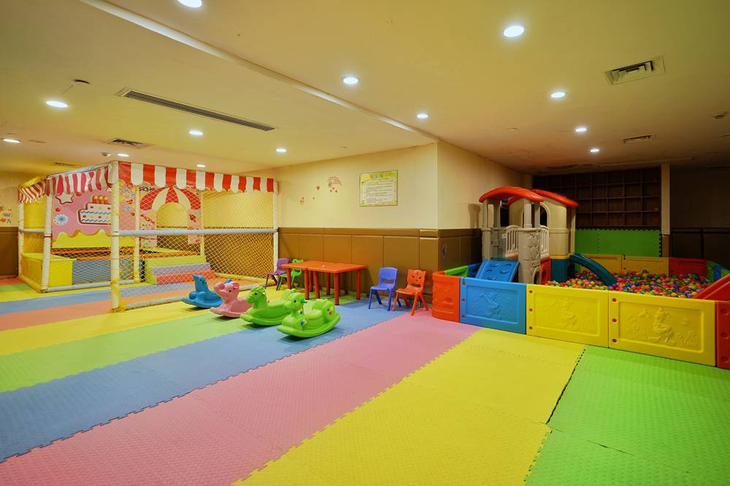 宽敞的儿童乐园里摇摇马、海洋球、滑滑梯一应俱全,