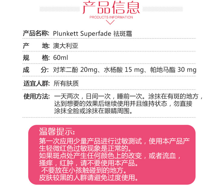 (永久下架)澳洲John Plunkett Superfade 身体手足祛斑霜 60ml