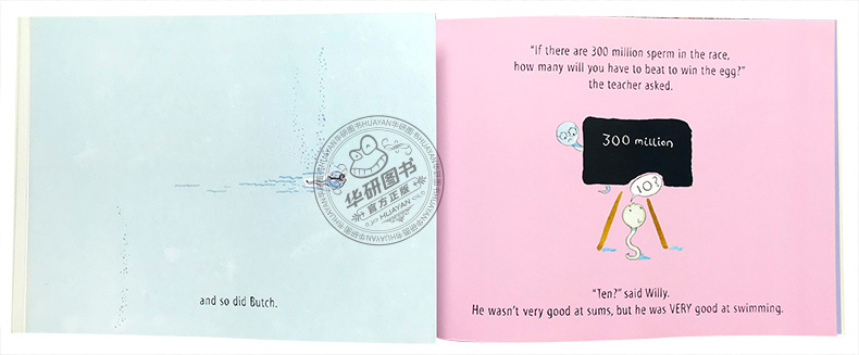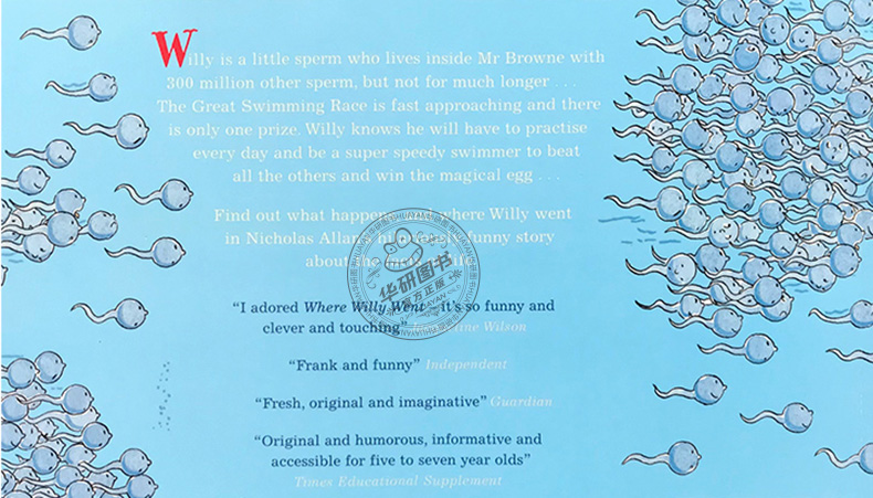 Willy is a little sperm who lives inside Mr Browne with 300 million other sperm, but not for much longer . . . The Great Swimming Race is fast approaching and there is only one prize. Willy knows he will have to practise every day and be a super speedy swimmer to beat all the others and win the magical egg . . .