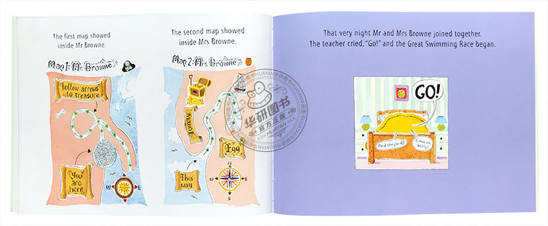 除此之外,这本图画书将大人难以启齿的性教育话题,以简单的水彩画风表现出来,再加上小威戴着蛙镜的可爱造型、小精子居住的街道图,甚至是布朗先生的身体地图,都让人感受到画者营造的幽默风格。