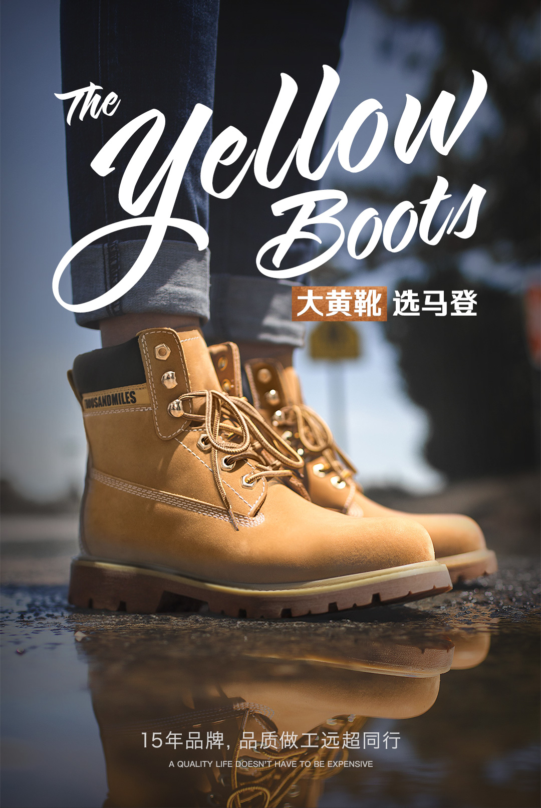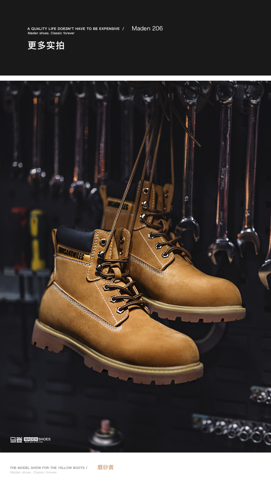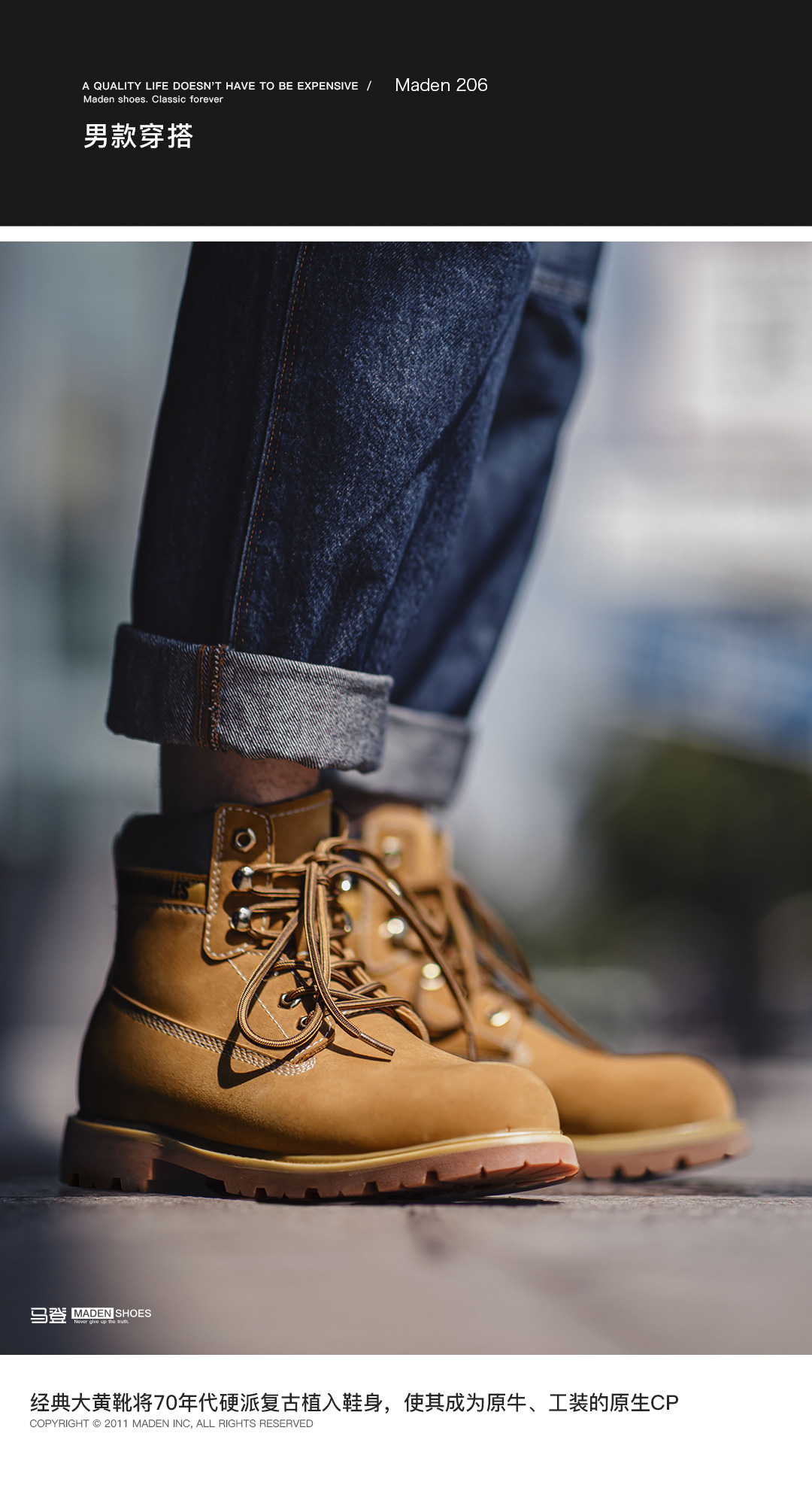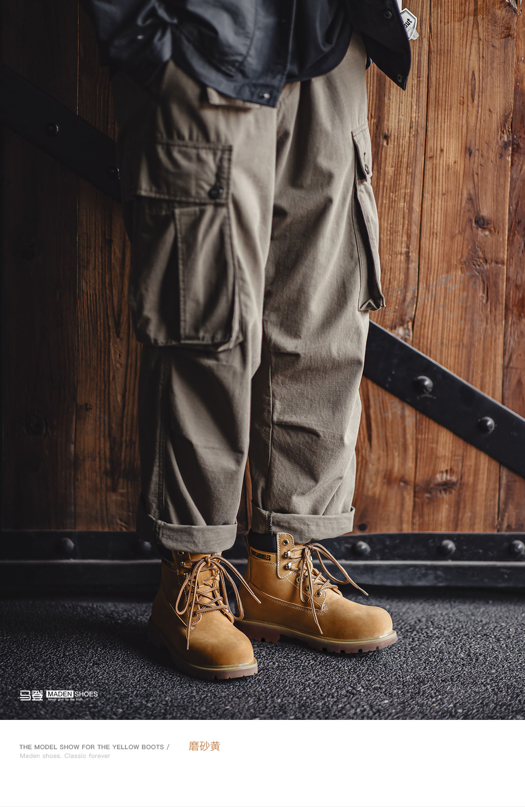 马登秋季新款美式大黄靴男休闲中帮马丁靴户外登山靴复古工装靴子