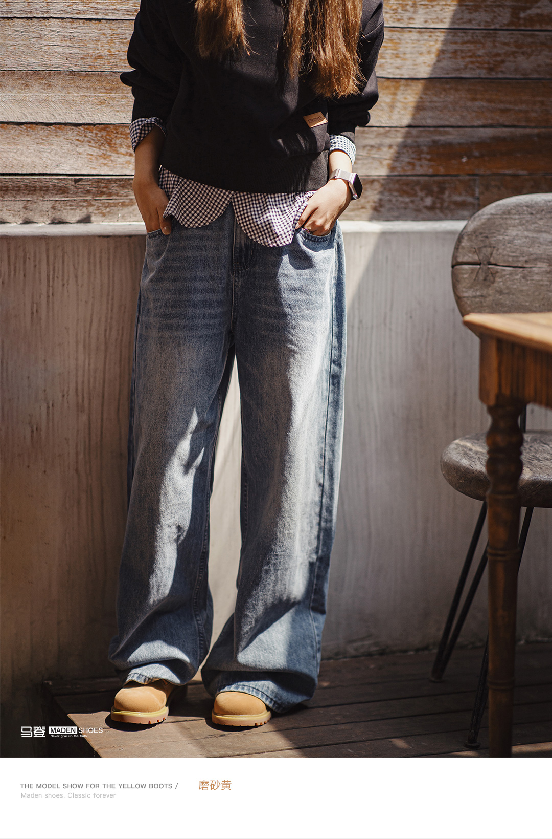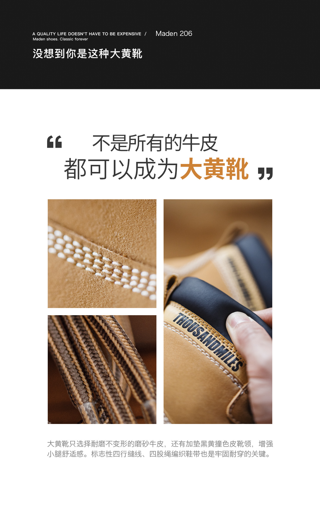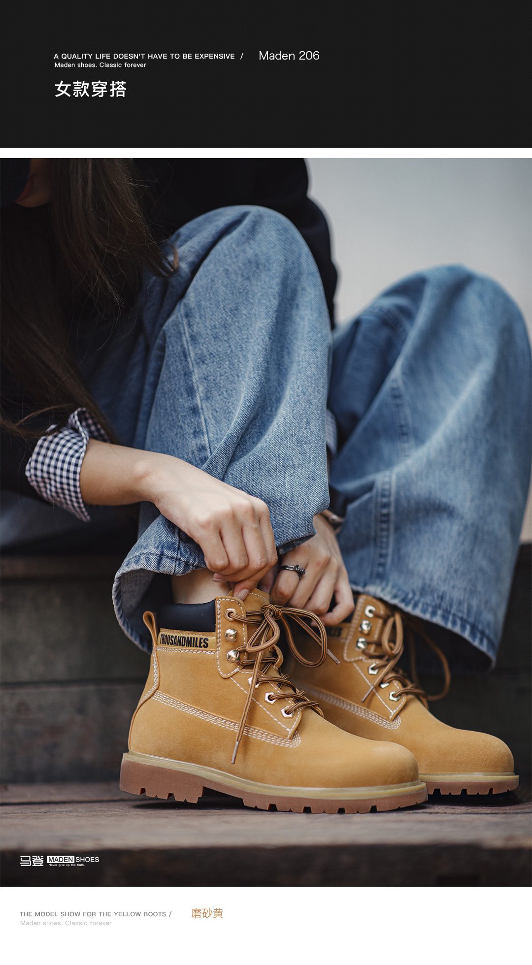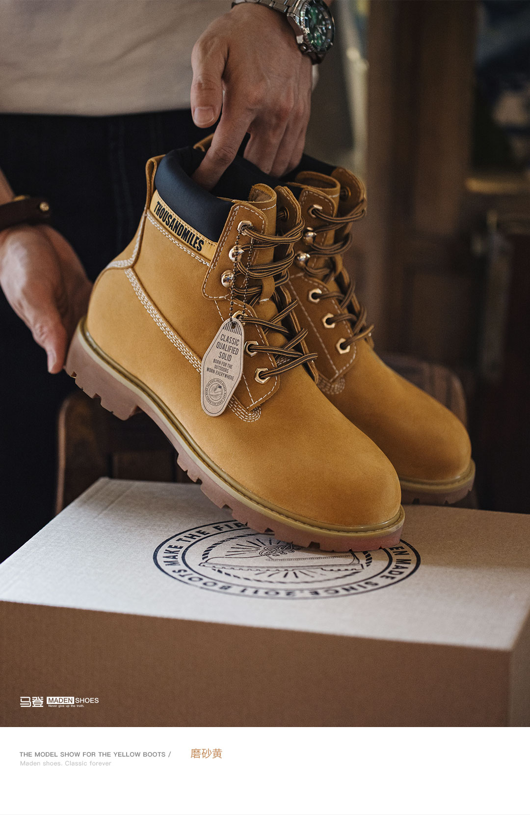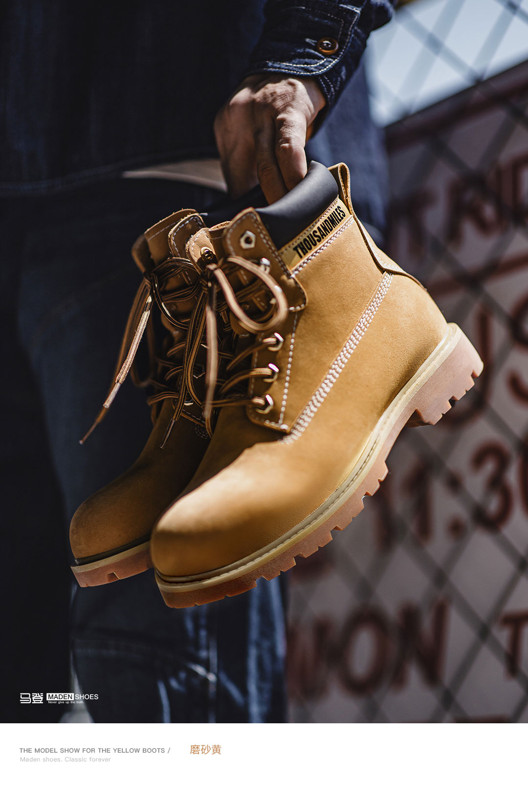 马登秋季新款美式大黄靴男休闲中帮马丁靴户外登山靴复古工装靴子