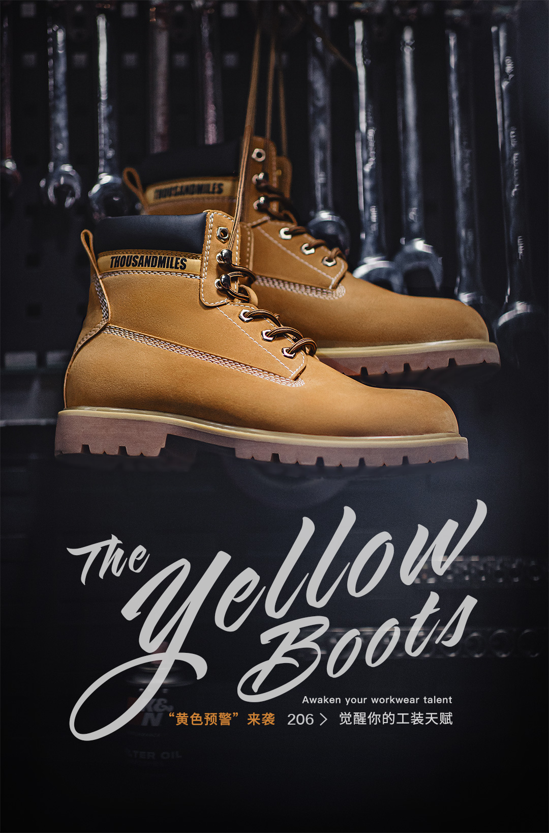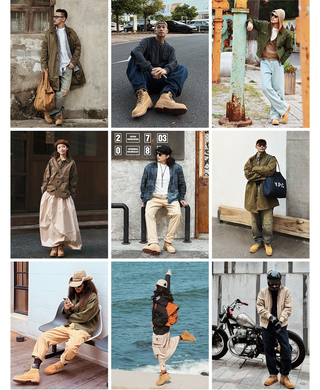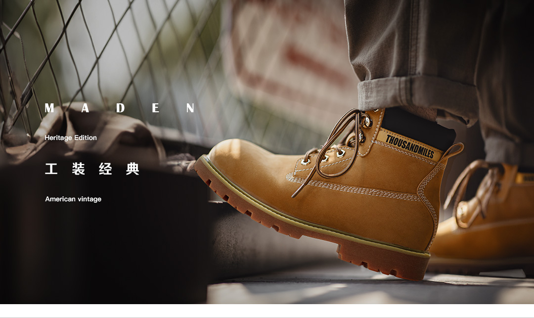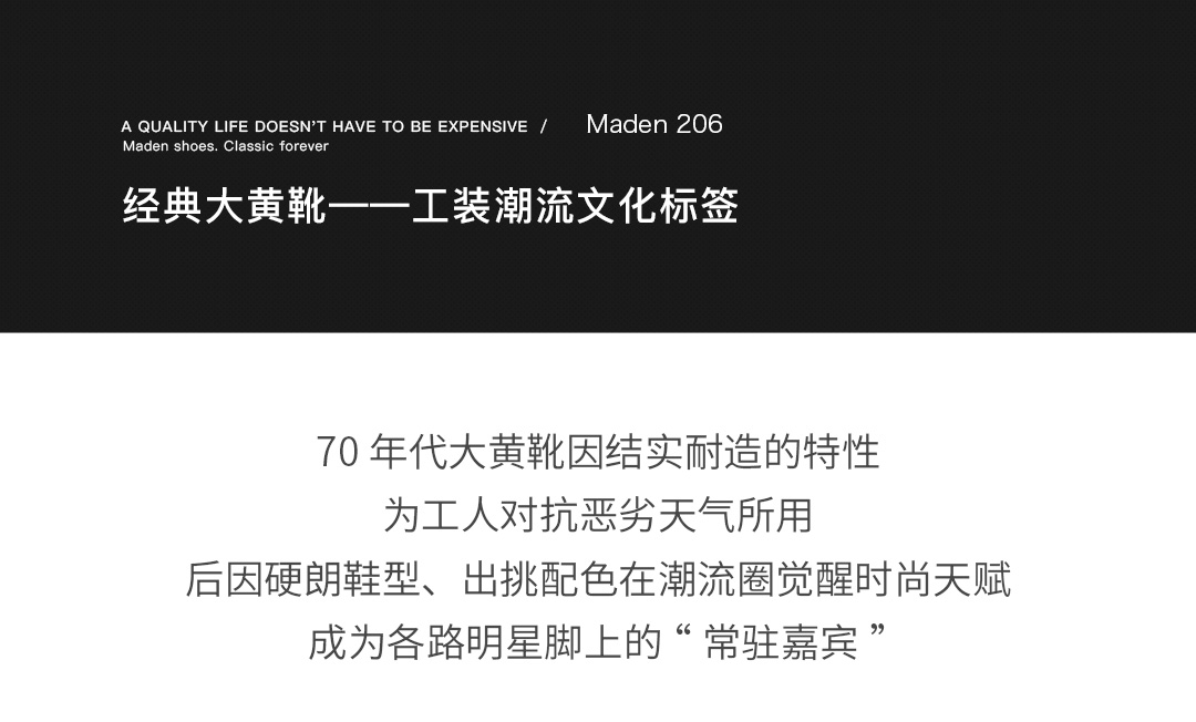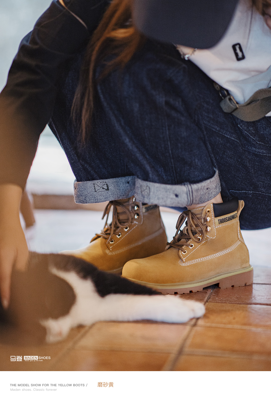 马登秋季新款美式大黄靴男休闲中帮马丁靴户外登山靴复古工装靴子