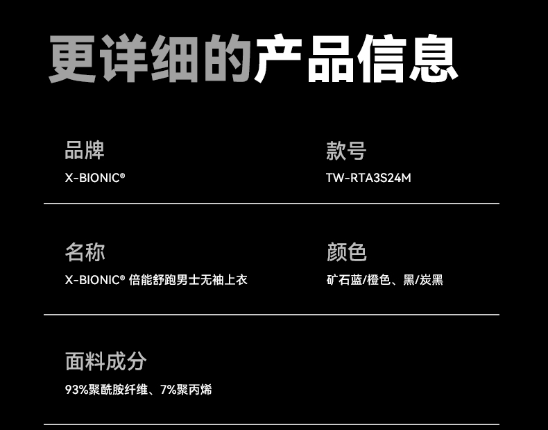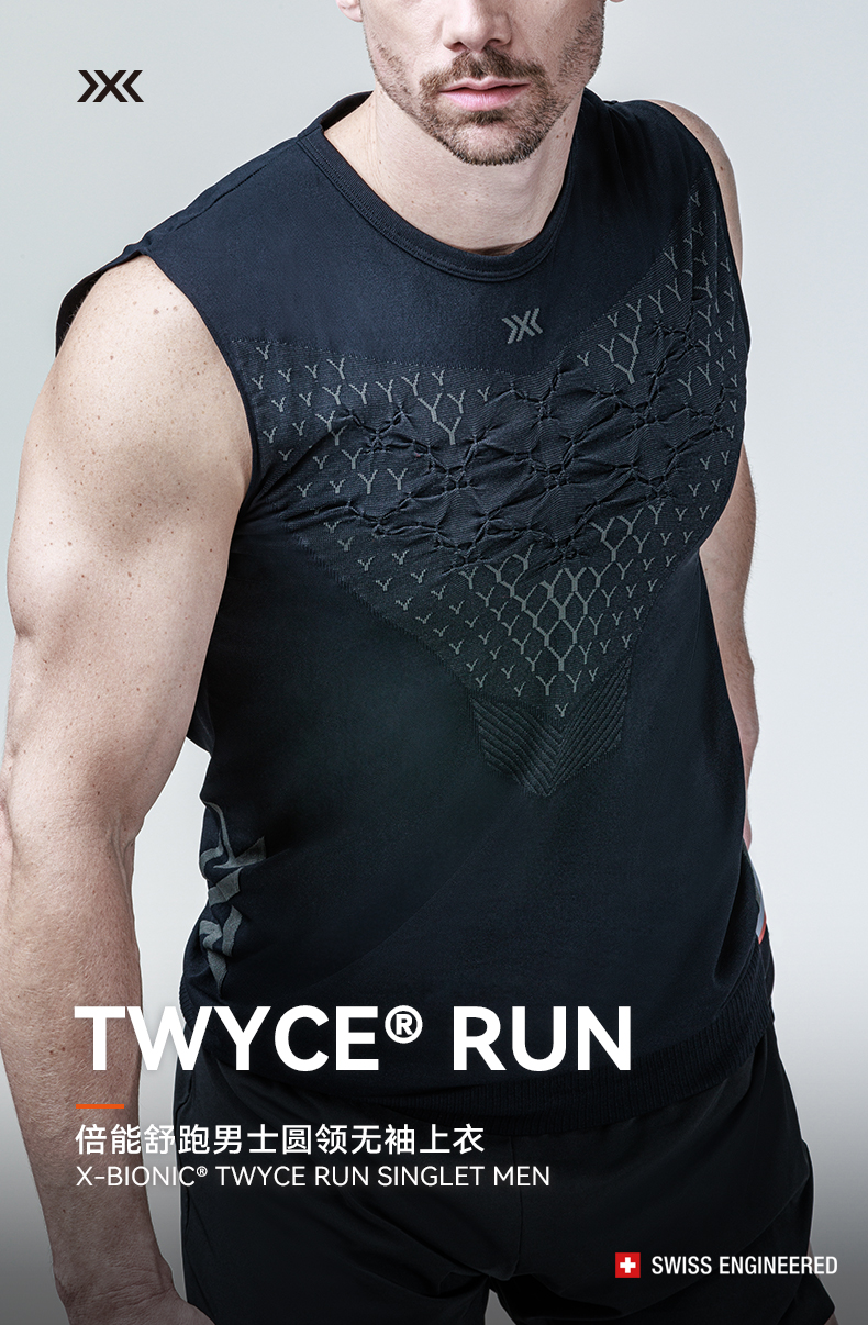 xbionic 倍能舒跑男士无袖上衣 夏季轻量透汽路跑健身衣