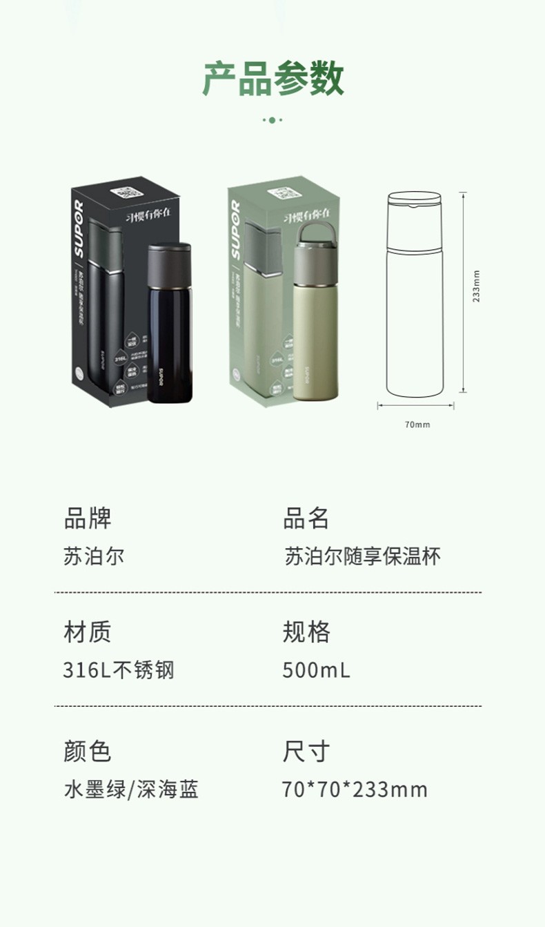 苏泊尔随享保温杯水墨绿/KC50HY30 500ml