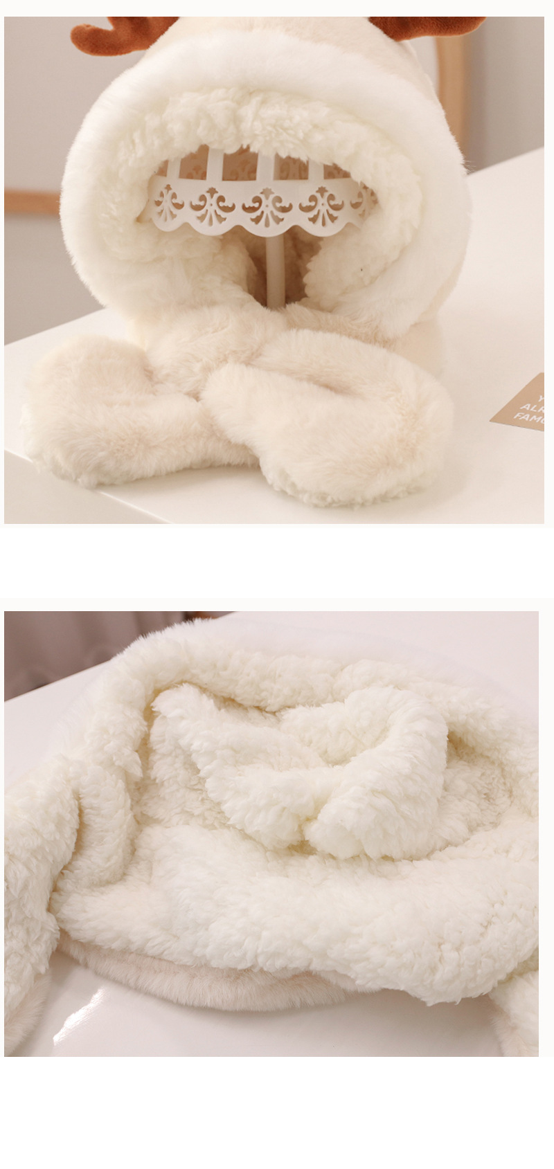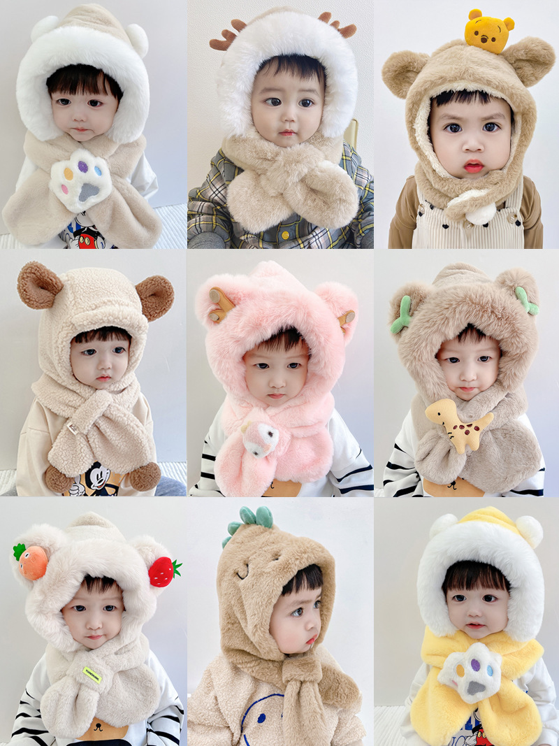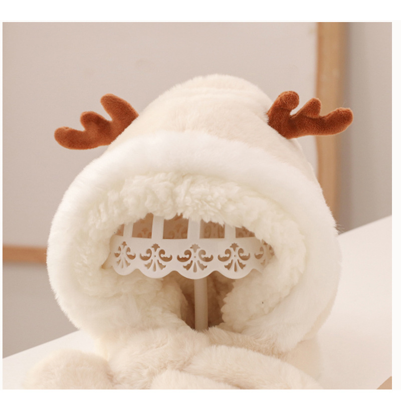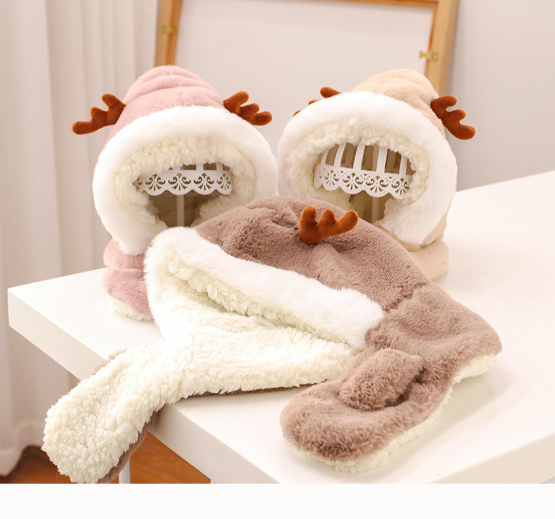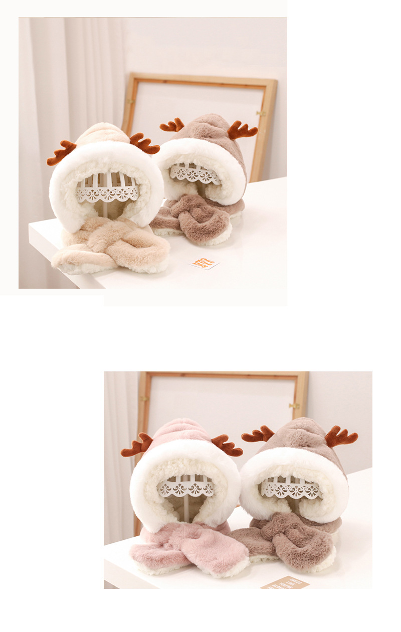 儿童帽子围巾一体加绒加厚可爱男童女童卡通鹿角宝宝套头帽
