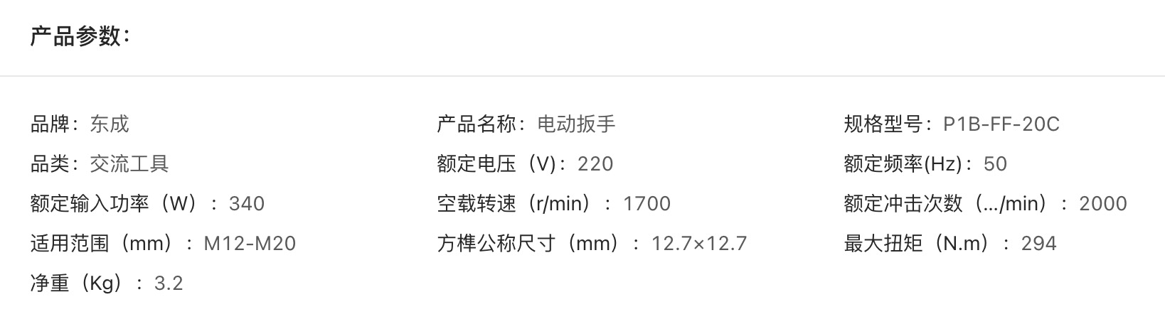 东成 电动扳手 P1B-FF-20C
