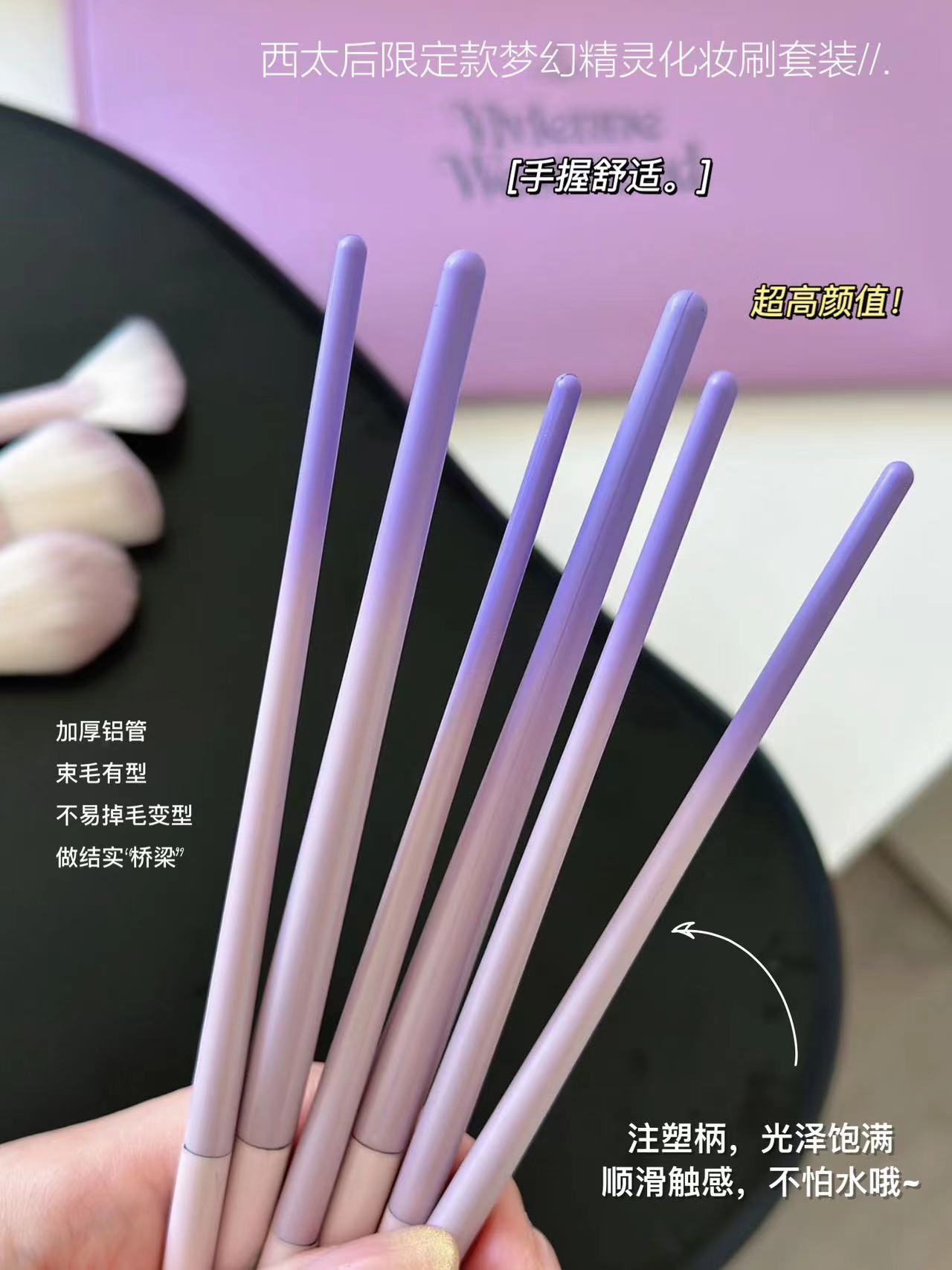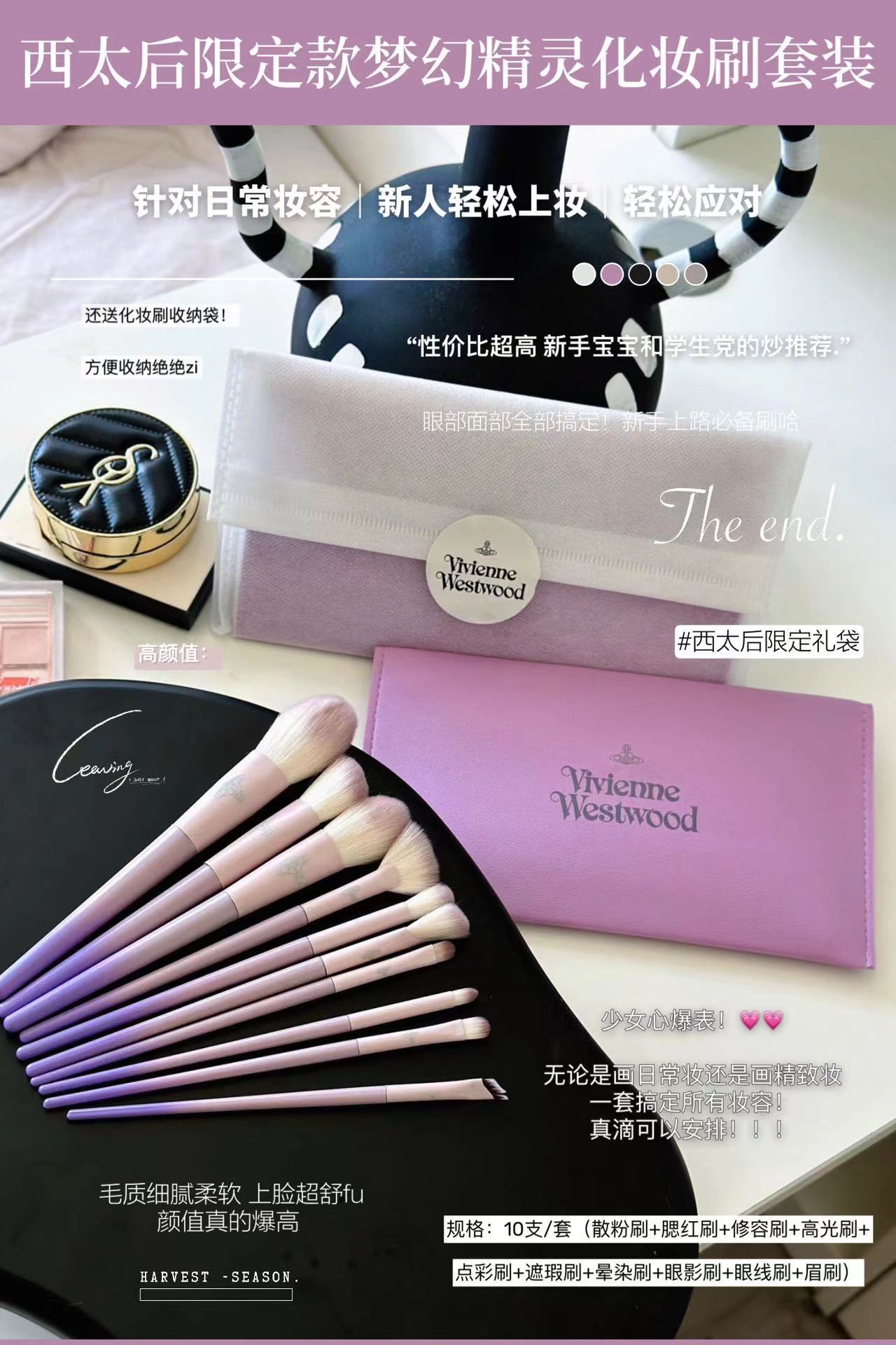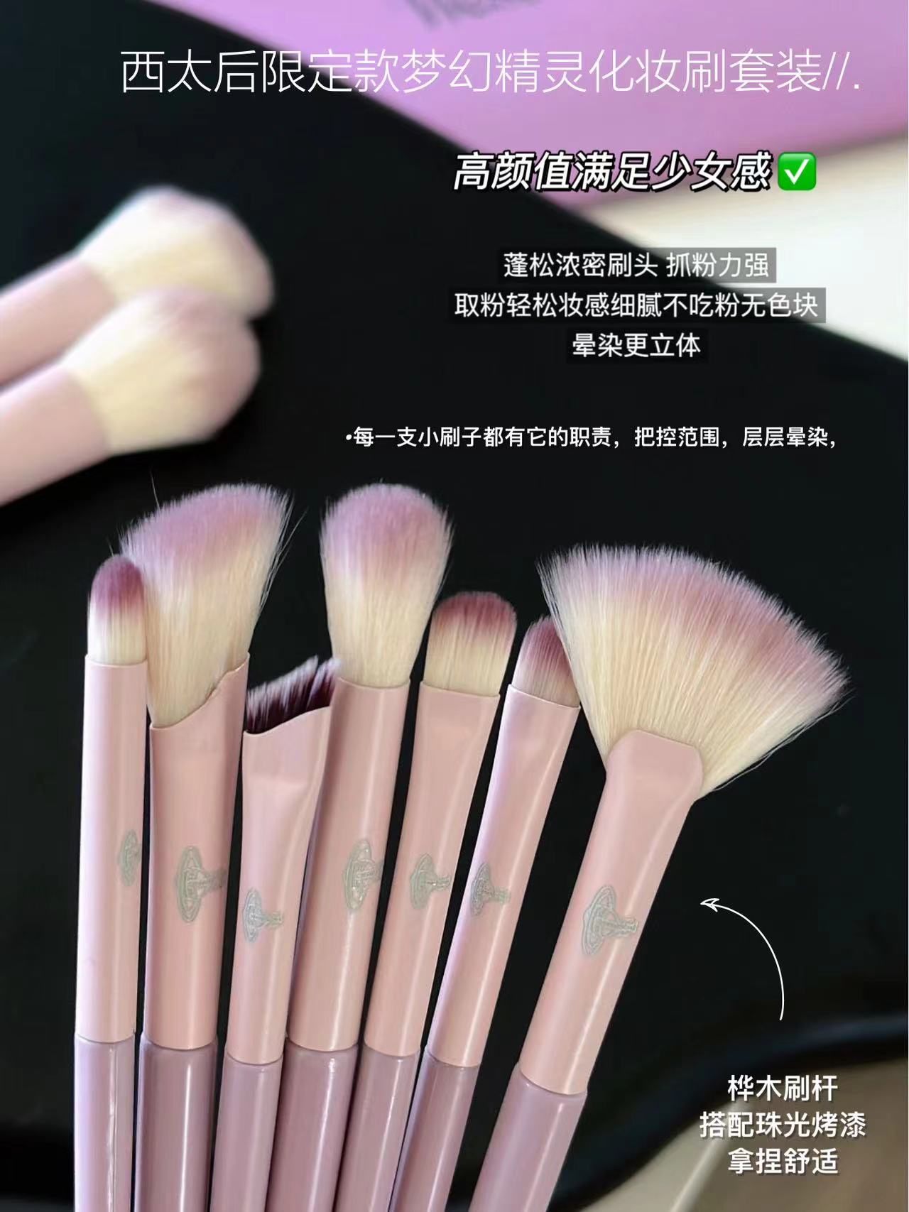 限定款梦幻精灵化妆刷 一套面部妆容全部搞定??谁不心动算我输 梦幻紫的外观包装质感up!?wan美性堪比艺术品 一套十支?眼部和面部的没有废刷!毛软乎乎的不扎脸 不用动脑子选各种眼影腮红高光刷等等 一套刷子配齐!主要就是耐用实用!!!