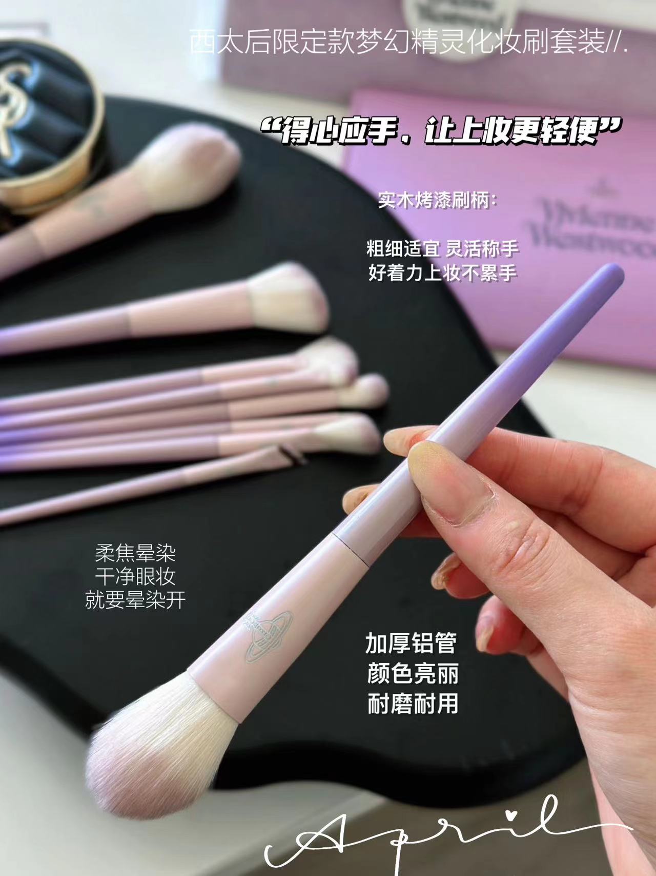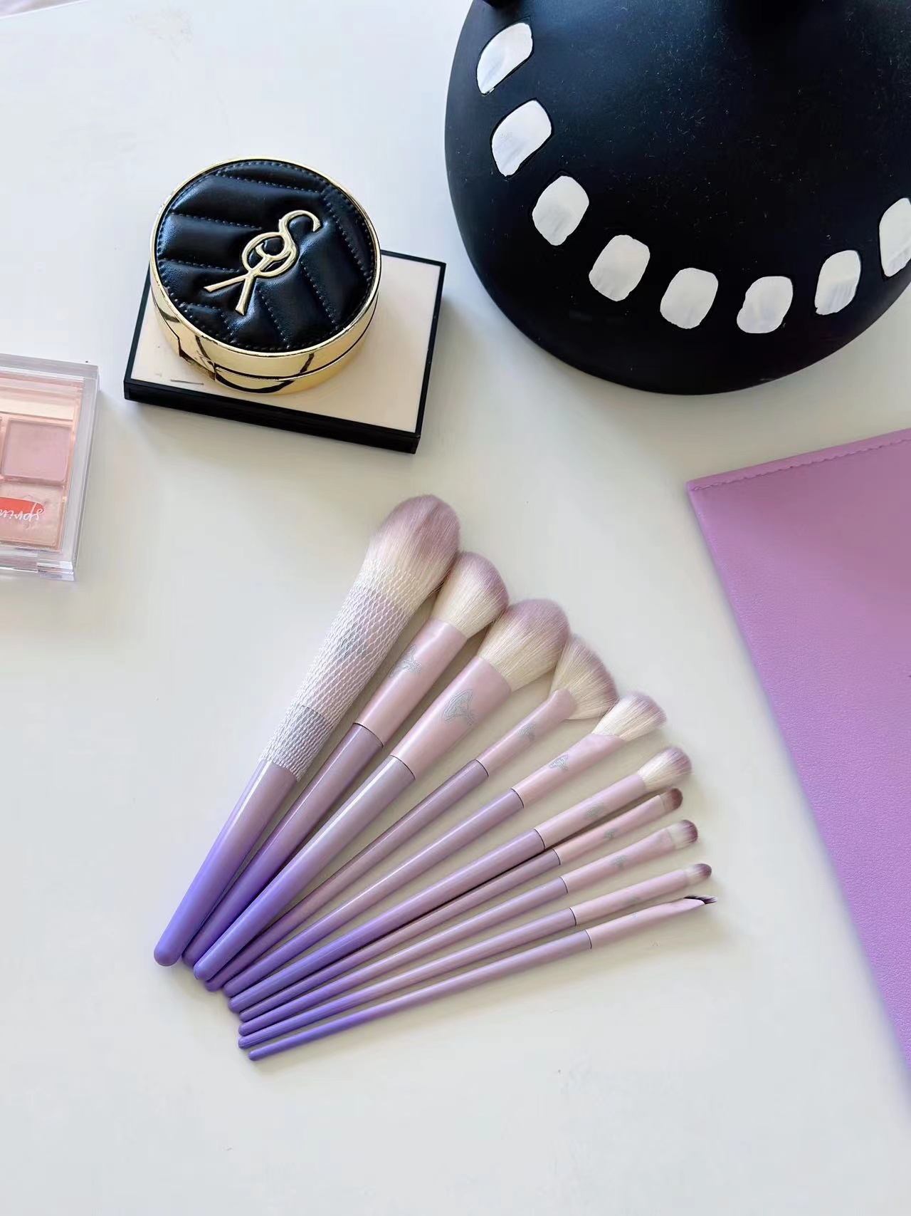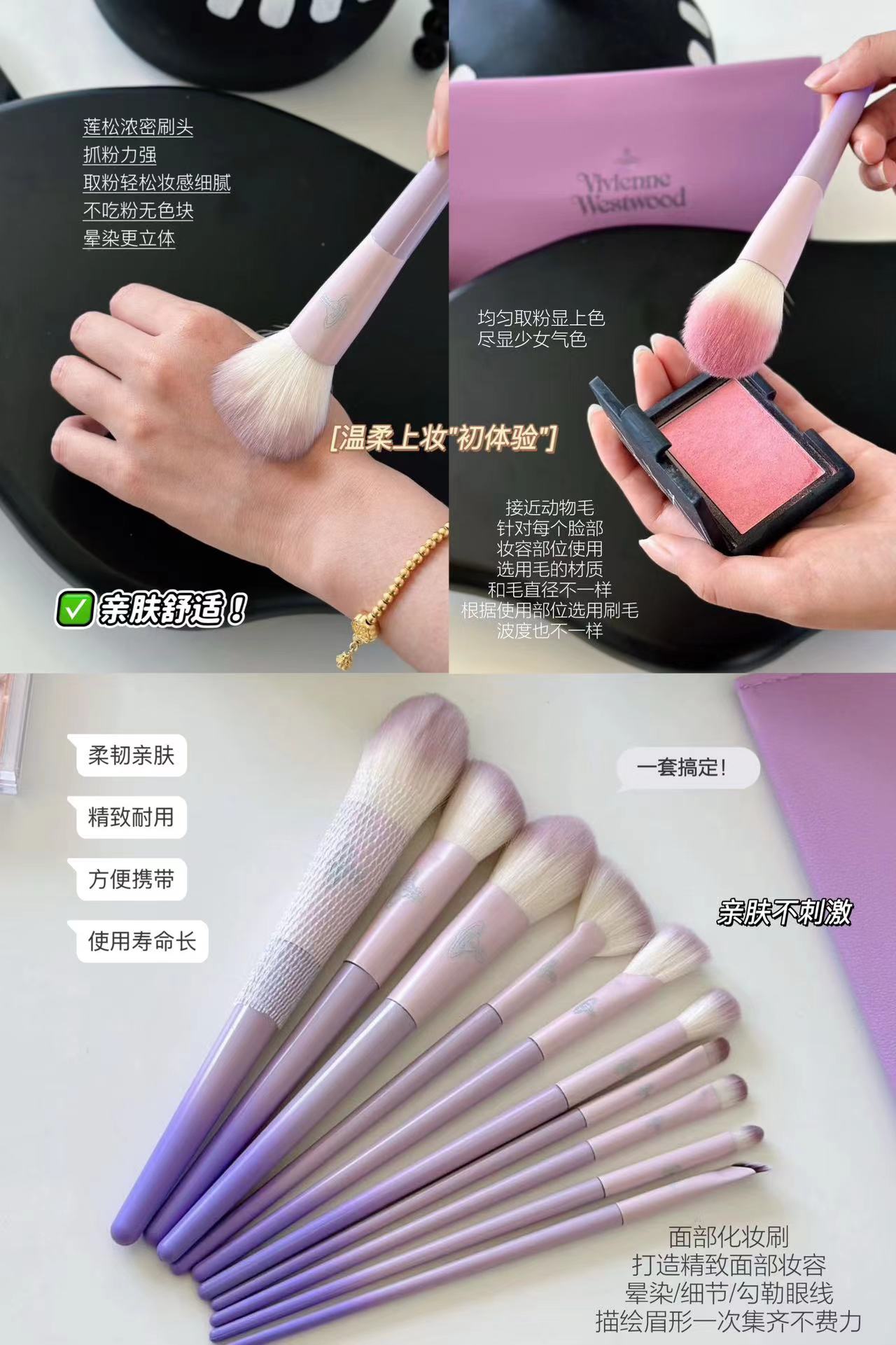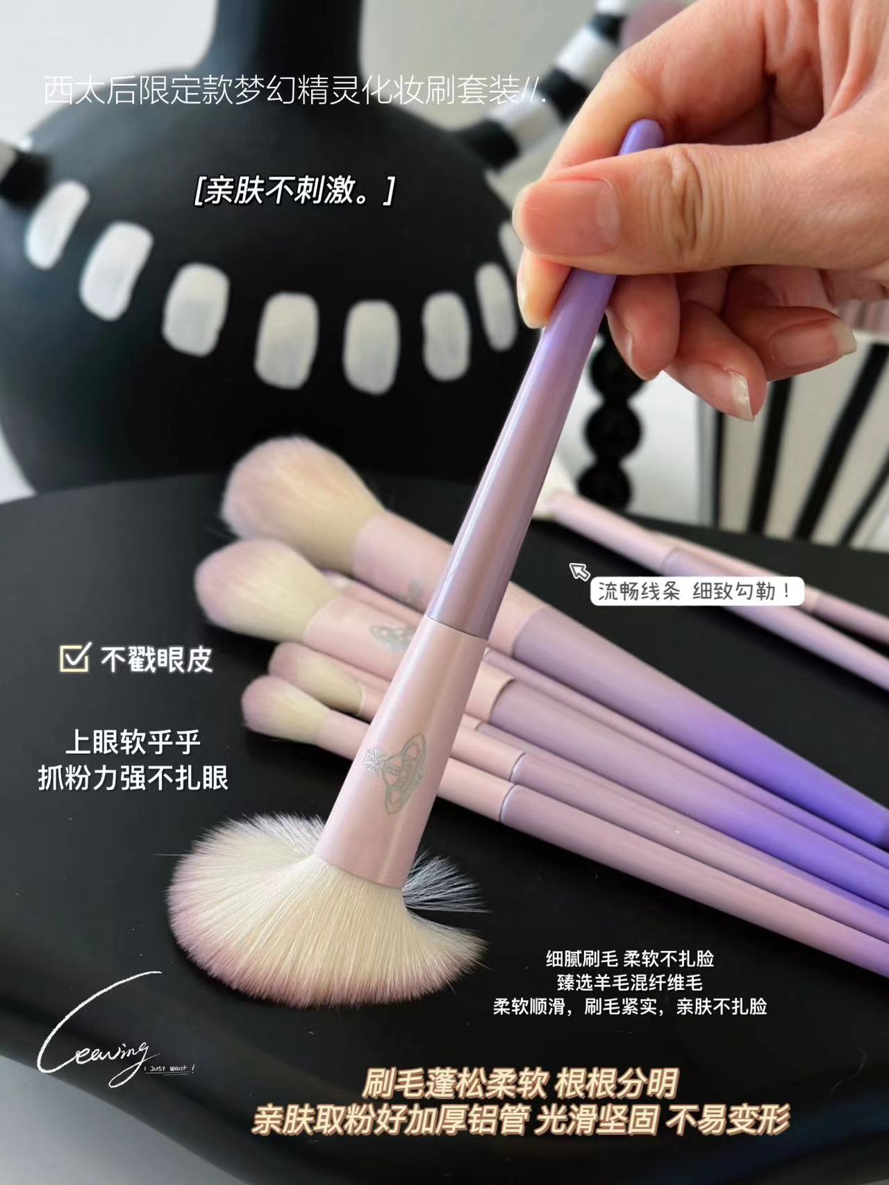 限定款梦幻精灵化妆刷 一套面部妆容全部搞定??谁不心动算我输 梦幻紫的外观包装质感up!?wan美性堪比艺术品 一套十支?眼部和面部的没有废刷!毛软乎乎的不扎脸 不用动脑子选各种眼影腮红高光刷等等 一套刷子配齐!主要就是耐用实用!!!