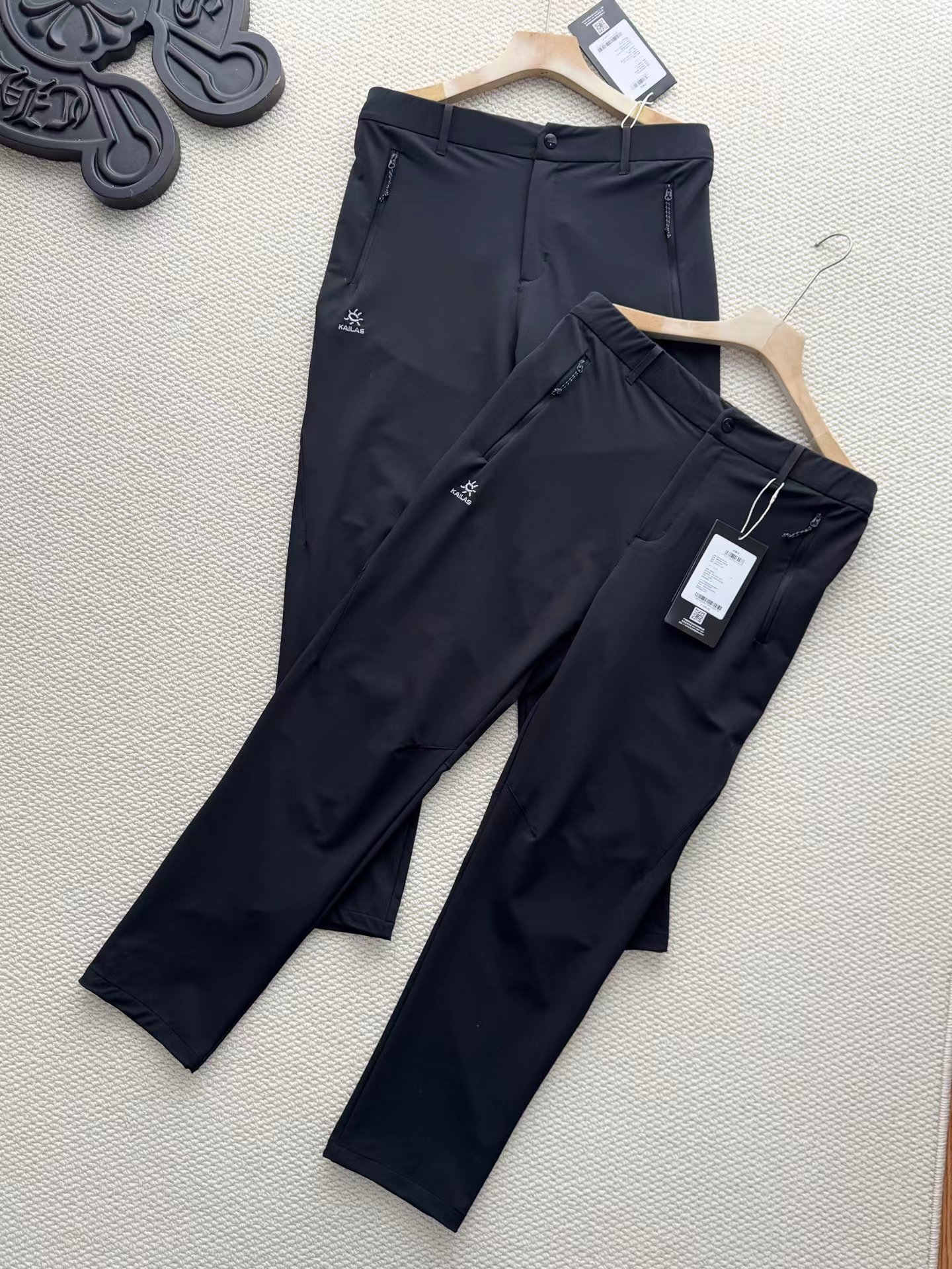 春夏款新黑裤 ,耐磨拼接梭织登山男款登山徒步运动长裤!专业版型!3D立体刺绣LOGO,用心设计与复杂的工艺,它的设计非常讲究,选色考究遵循并致敬精典!腰部弹力提花织带,走线平整,针脚密实!舒适美观!腿部带有透气孔,减少闷热感膝窝透气冲孔!针对人体不同肌肉部位运动量需求特研保证强悍性能的同时提供优异塑形效果,15°预弯曲设计更贴合运动状态下腿部曲线60°横向活动区,立体裆位剪裁大幅减少拉扯感180°纵向活动区,腿部、膝部立体剪裁,攀越0阻力,为长距离徒步而生,严防风雨灌入,脚口可调节,内置靴带扣紧固防崩扣RIRI紧密推扣!专业设计特征:立体膝位,为抬腿、跨越等大幅度动作提供了充足的活动空间解决因膝位紧绷导致的无法正常发力问题。钻石立裆源自专业的攀岩裤结构,可增加裆部的活动空间大幅减少横向活动时拉扯感。脚口靴带钩+抽绳设计,用来钩住登山鞋的鞋带,配合脚口抽绳可阻止砂石、蚊虫进入,可代替部分防砂套的作用。适合中低海拔长距离徒步!耐磨抗撕裂!登山运动版型!