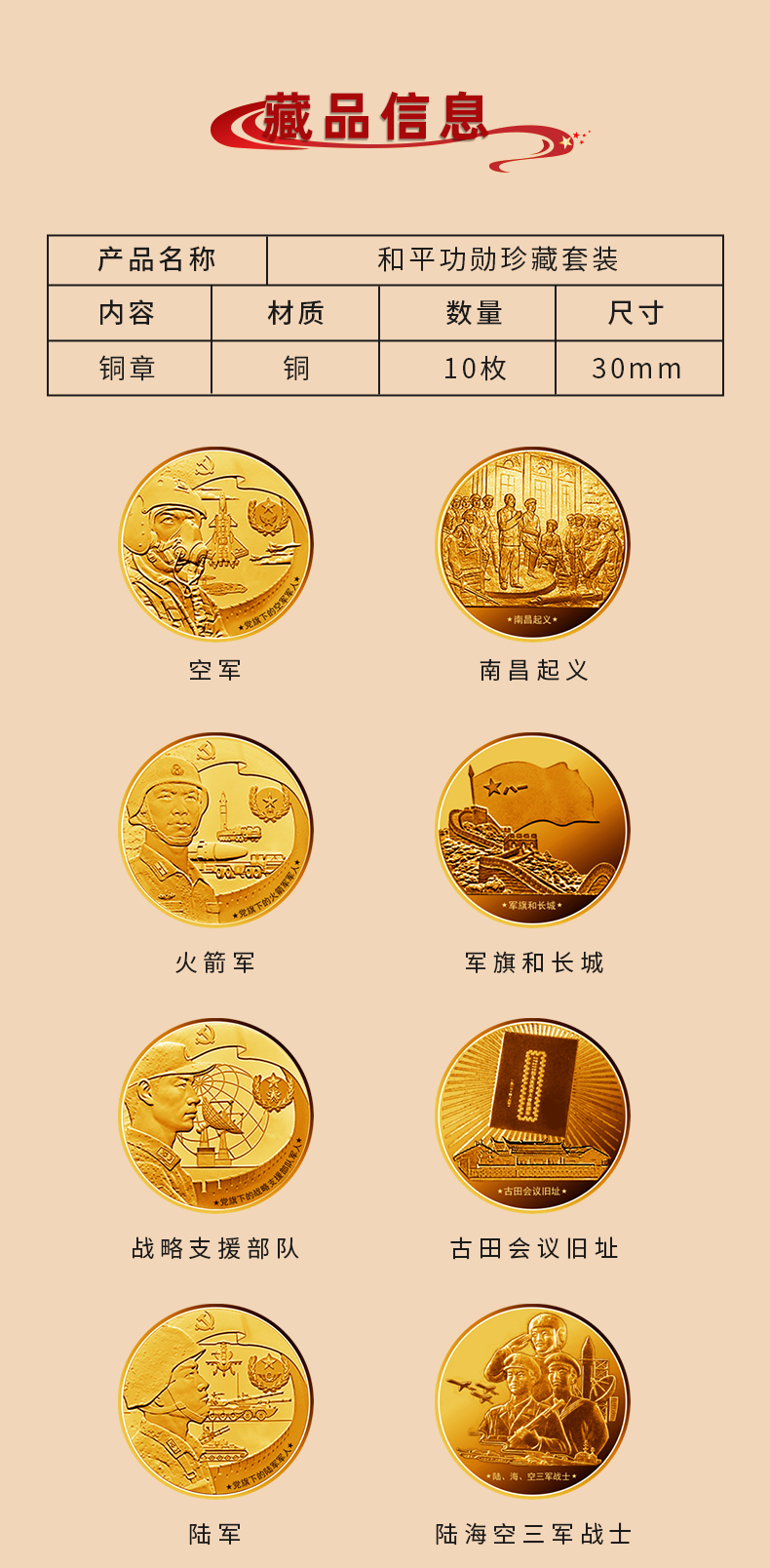 《和平功勋》建军题材系列纪念章珍藏版(10枚)
