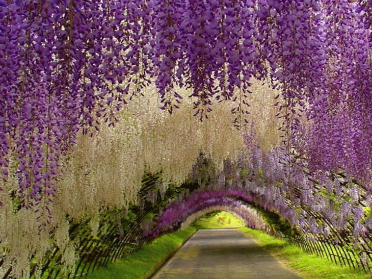 1. 紫藤隧道:七彩紫藤隧道,由数千棵不同花色的紫藤花搭建而成,均为国内外优质品种,不乏上百年的古桩紫藤。除了常见的紫色外,还有白色、紫红、粉红等颜色。每年的4月至5月是最佳观赏时间,结合高科技打造的梦幻光影,夜晚时分,犹如穿梭于紫色的时光隧道。