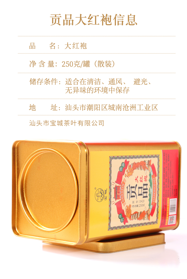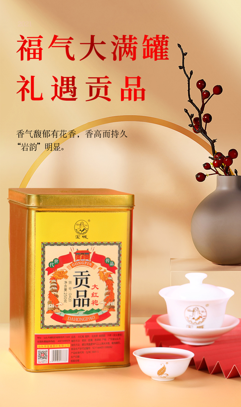 宝城D420贡品大红袍茶叶2罐装共500克散装乌龙茶岩茶礼盒装