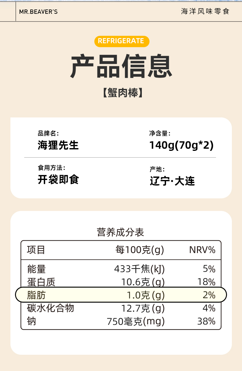 【海狸先生】低脂低卡即食零食140g*5袋多规格可选