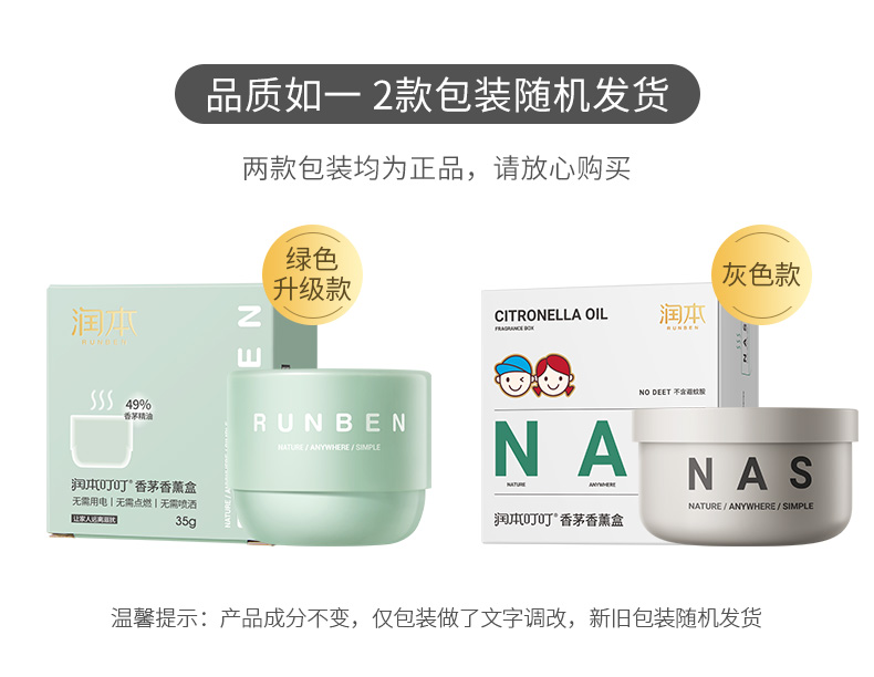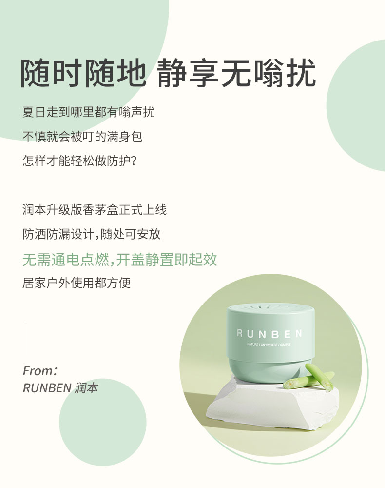 润本防蚊香薰盒婴儿孕妇室内户外驱蚊凝胶