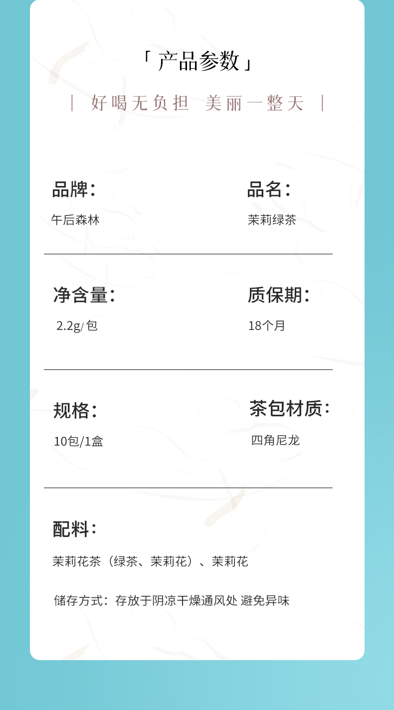 午后森林·茉莉绿茶盒装 小包装茶包1包1泡健康饮品 2盒装 10包/盒