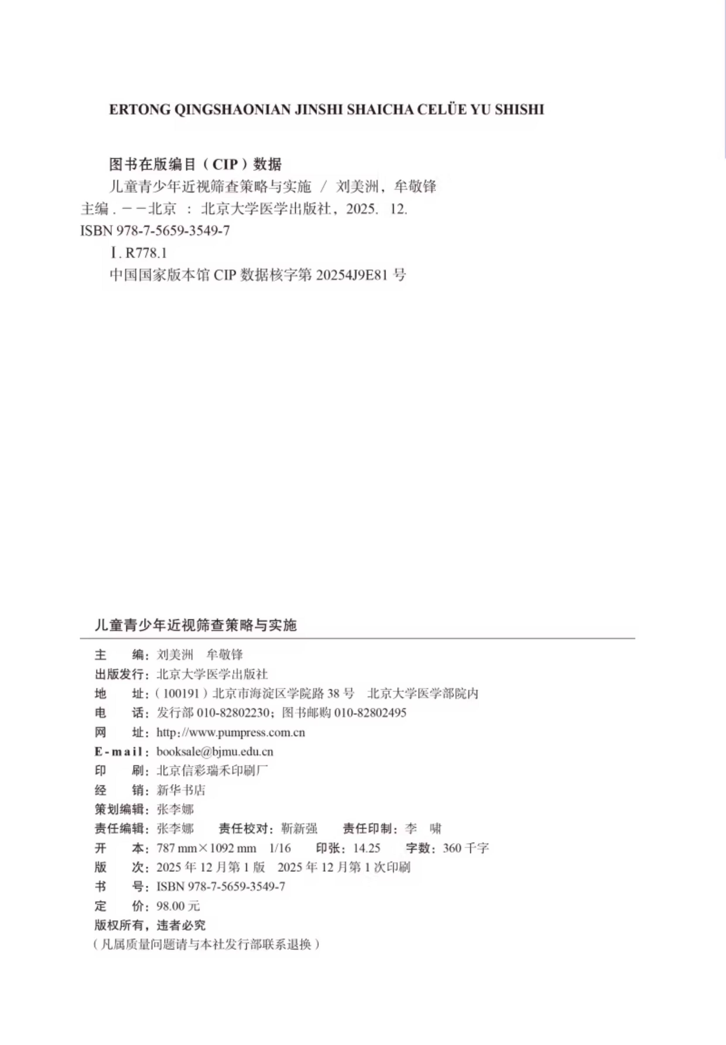 书名:儿童青少年近视筛查策略与实施