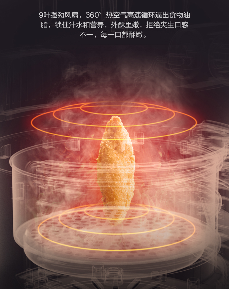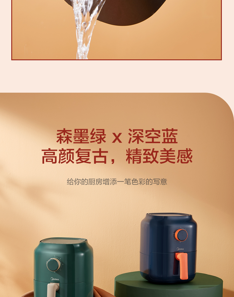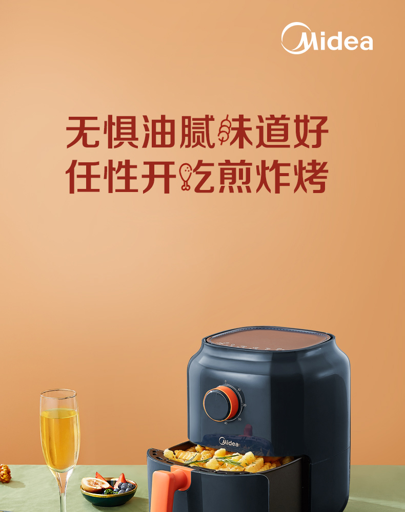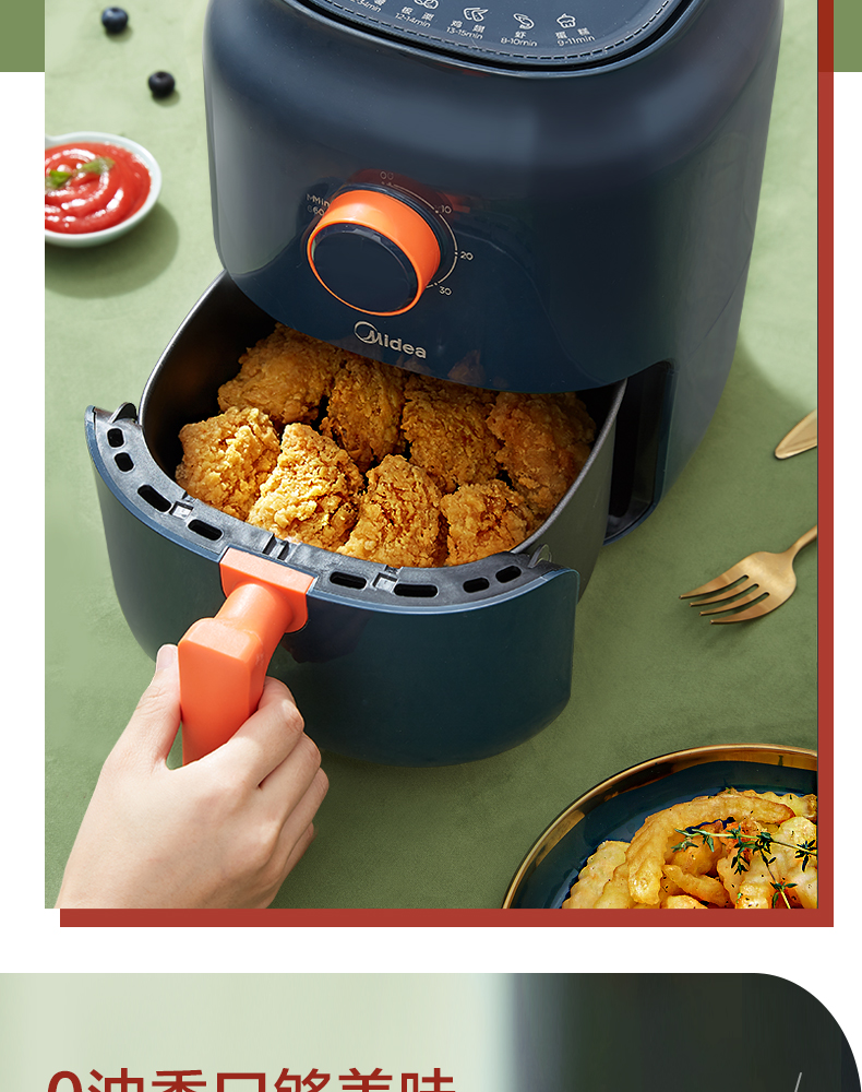 美的(Midea)无油空气炸锅家用大容量全自动多功能深空蓝KZ30E3L