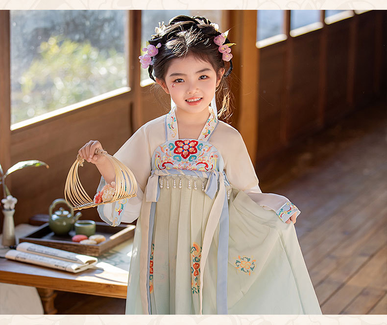 汉服女童春秋新款襦裙原创唐装中国风超仙公主儿童古装连衣裙