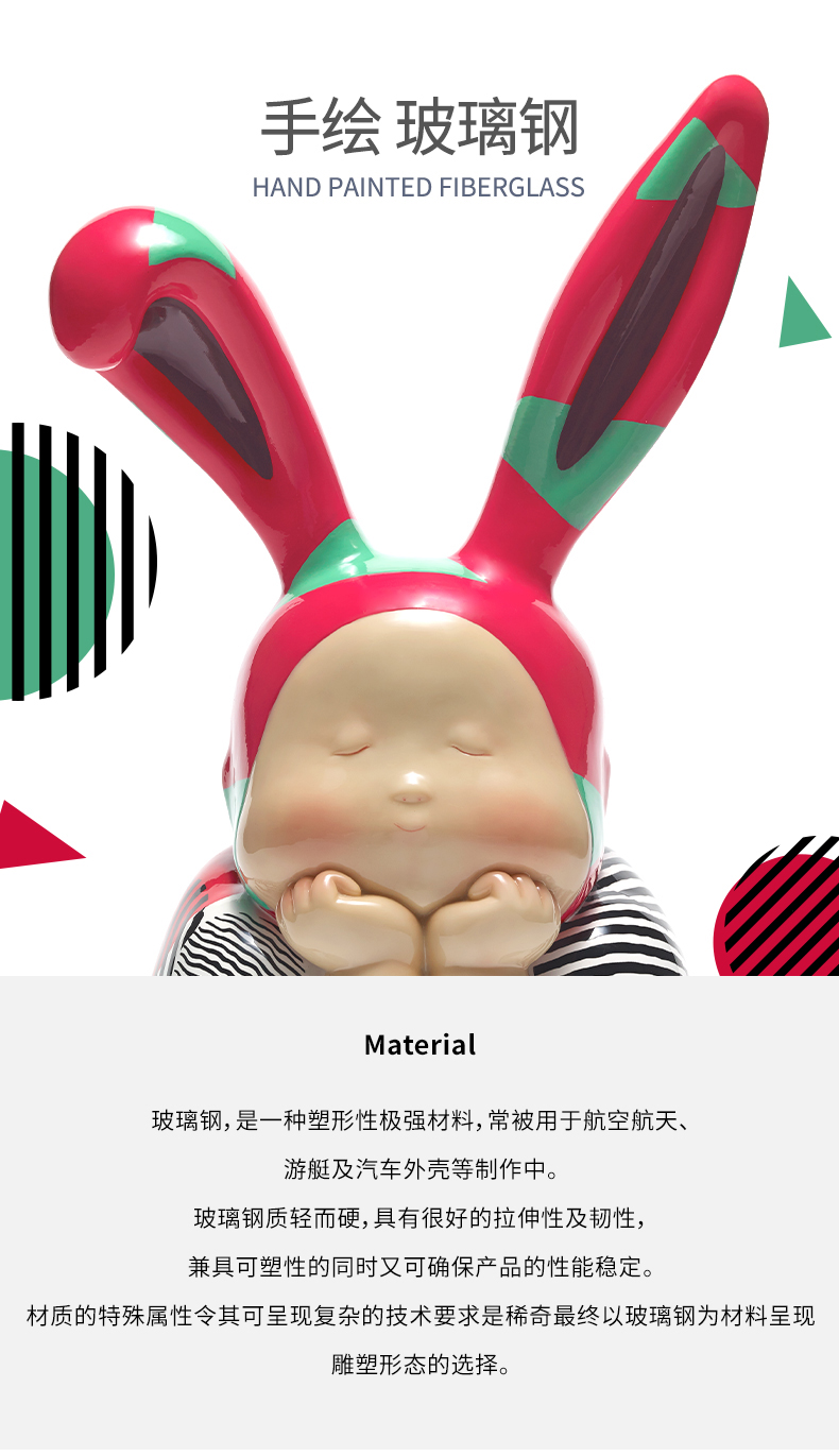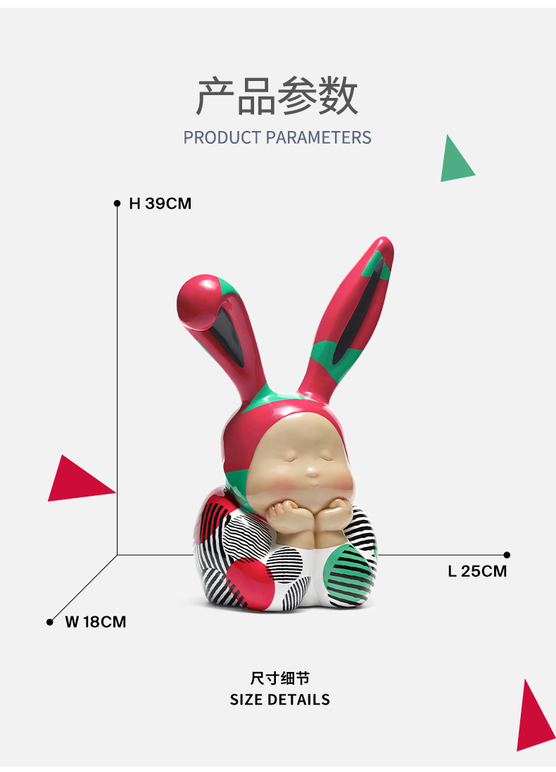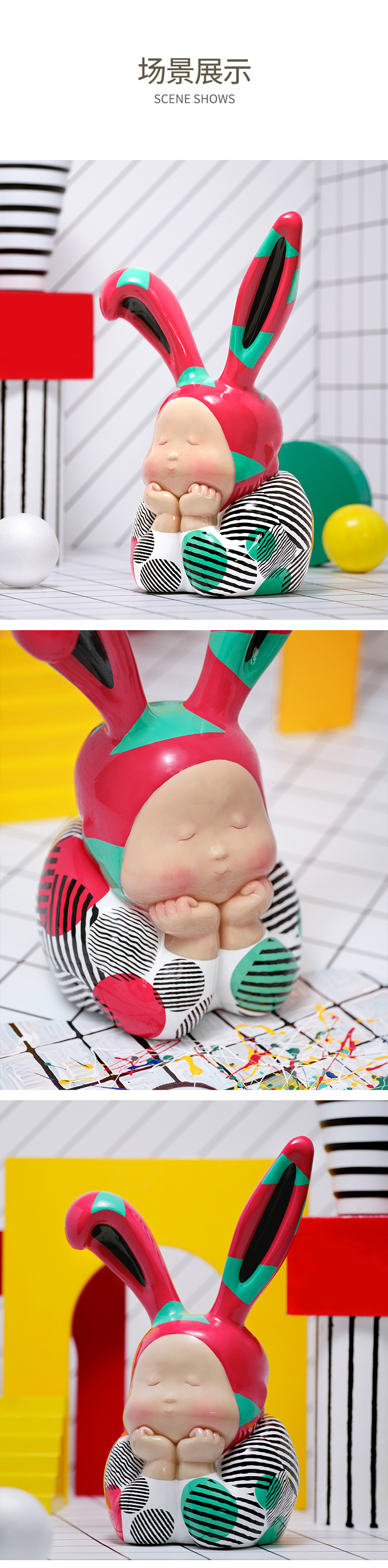 稀奇艺术《兔比比-孟菲斯》可爱卡通家居桌面摆件玻璃钢雕塑礼物