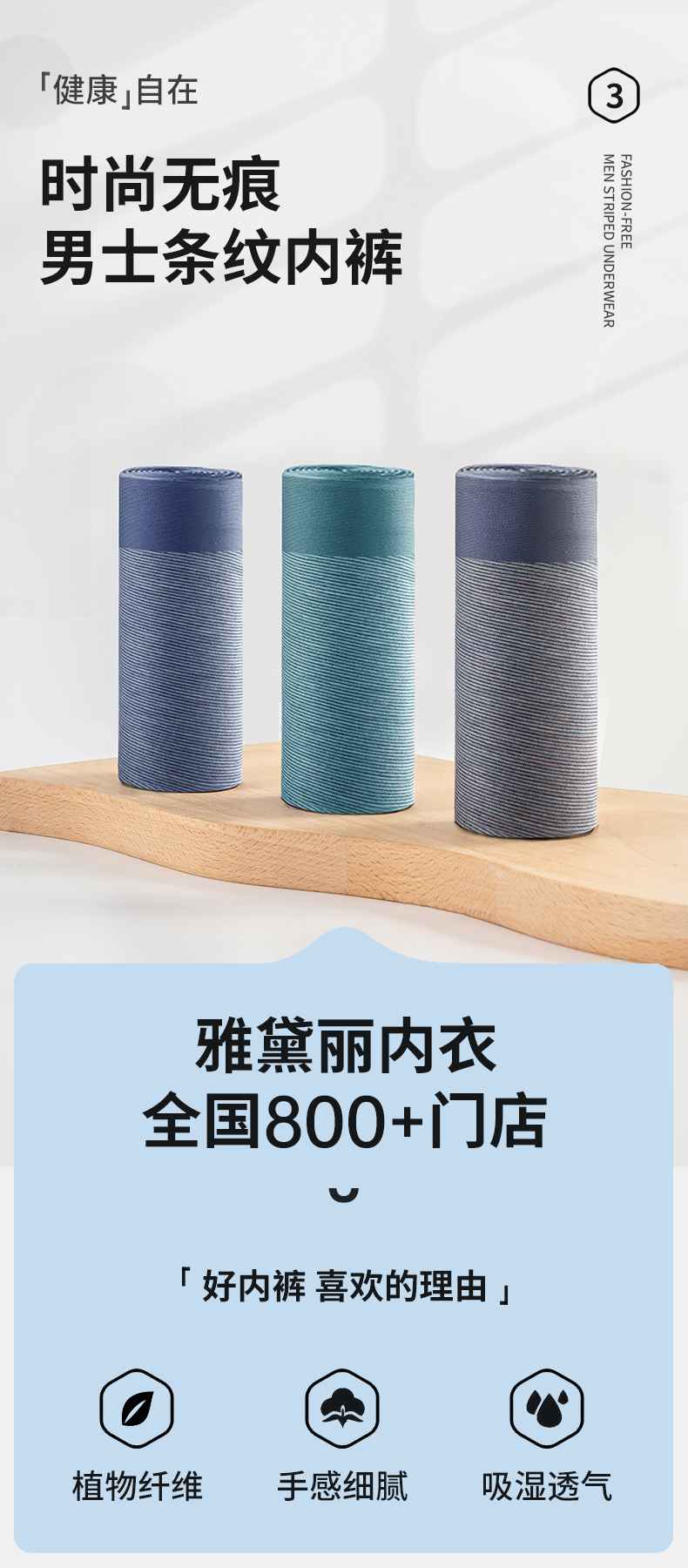 雅黛丽平角内裤男士短裤头薄款无痕中腰四角裤高弹透气条纹裤衩男